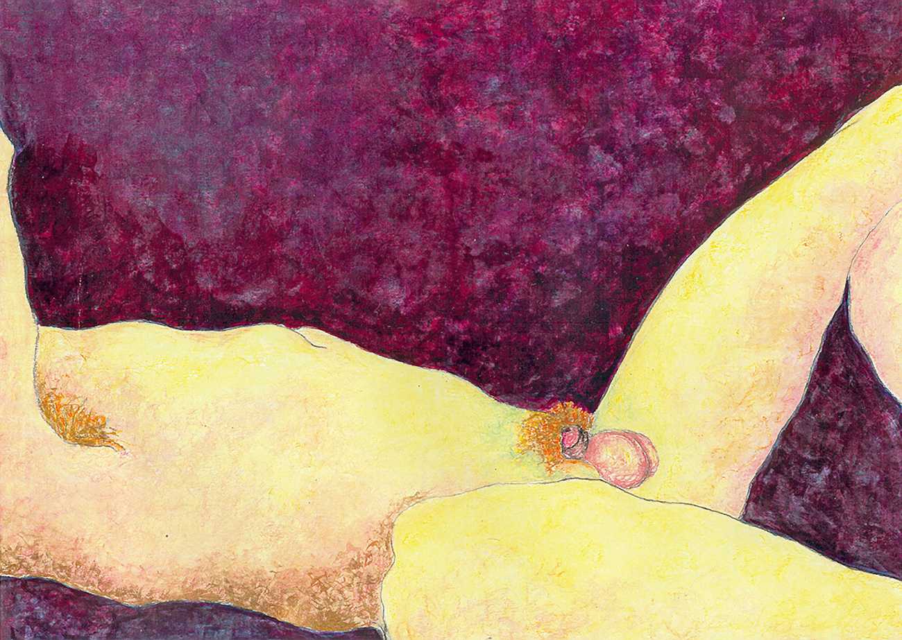 Patricia Boulay grew up in the small town of Remirement in the Vosges region of eastern France, and in her own words ‘managed to escape’ when she was twenty to the nearest city, Nancy, to study economics. Art was her real passion, however, and from 1980 to 1985 she studied painting and sculpture at the Luminy campus of the École Supérieure d’Art et de Design in Marseille. Her closest friend, Martine, was always very important to her, and after Martine moved to Montpellier, also to study art, their shared travels and experiences formed the basis of her determination to illustrate her lived experience of intimacy and sexuality. In order to finance her painting studies, Patricia worked for a time in a Marseille cabaret, where if the customer wanted and the woman agreed, they arranged to meet in a hotel afterwards. She wrote of this time that it was through these experiences that she learned that sexual desire can sometimes be fulfilled without the protective accompaniment of love.