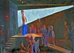 In the early 1980s he began to paint large canvases based on his personal obsession with erotic loneliness, but his subject matter closed off the commercial art market, and the bourgeois gay establishment disapproved of his depictions of the politically incorrect ‘bad’ gay life, the demimonde of cruising, hustling and loneliness. In despair that his work would never be accepted by the art establishment, Angus resigned himself to obscurity and poverty. He found a room in a New York welfare hotel where he could paint, but he refused to risk more humiliation by attempting to exhibit his work.