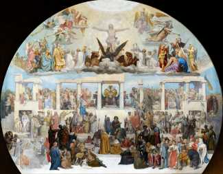 The one project that would have made his work famous never happened. In April 1848 the new French revolutionary government signed a decree awarding the gigantic task of decorating the Pantheon in Paris, the new ‘people’s temple’, to ‘Citizen Chenavard’, the mysterious and almost unknown artist from Lyon, who had contrived a scheme for 62 paintings depicting the development of human knowledge. Thus was begun one of the most bizarre and ill-fated enterprises in the history of western art. Had this panorama of human destiny been installed, it could not thereafter have failed to attract the attention of the learned, while simply mystifying the casual spectator. Instead, its forgotten fragments lie rolled up in the basement of the Musée des Beaux-Arts in Lyon, while the name of its author can scarcely be found in any of the innumerable histories of nineteenth century French art. Only an accident of history prevented its being placed in its intended location, the accident of the return of the building to the Catholic Church at the time of the coup d’état of 1851. Its substance was far too unorthodox, not to say heretical, for acceptance by the clergy. When in 1885 St Genevieve once more became the Pantheon, Chenavard was too old and angry to take up the task again.