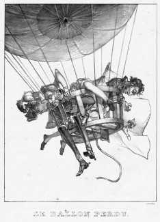 In 1849 Gavarni visited England, and on his return his impressions were published in the book Londres et les Anglais, illustrés par Gavarni, with many also appearing in the weekly paper L’Illustration. During the later years of his life Gavarni was much engaged in scientific pursuits. He submitted several papers to the Académie des Sciences, and was particularly interested in the question of aerial navigation, experimenting with different methods of navigation in balloons.