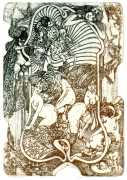 In 1992, after the Prague Spring when the Czech Republic lifted remaining artistic restrictions, Pavel Hlavatý was at last able to show his work freely in his own country. He was named one of the most productive artists in Europe by the Belgian art organisation Grafia, and in the last twenty years has created more than eight hundred ex libris, dozens of larger engravings sheets, many posters, and has illustrated books by Shakespeare, Dostoevsky and Bosch. He also collects prints and graphics, and curates the DRIT Prague Graphic Collection, which organises regular exhibitions.