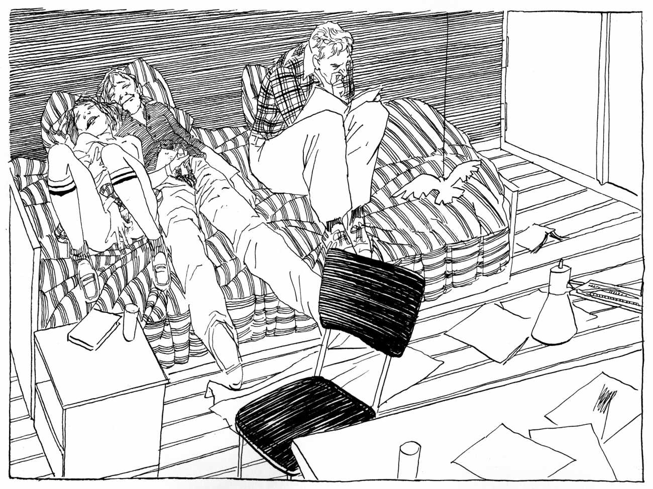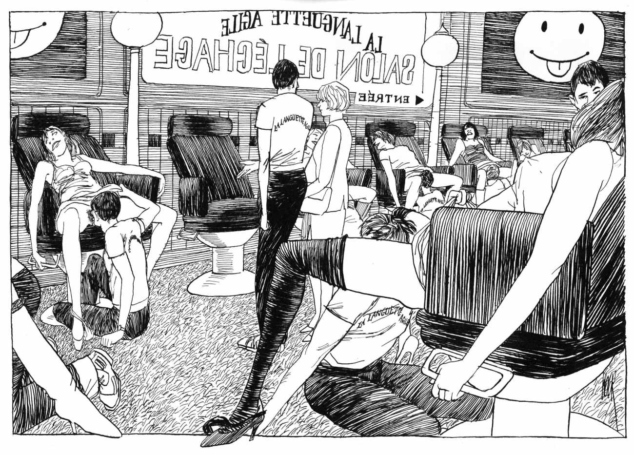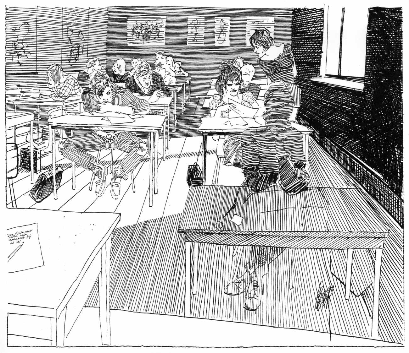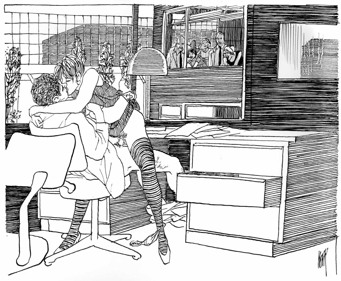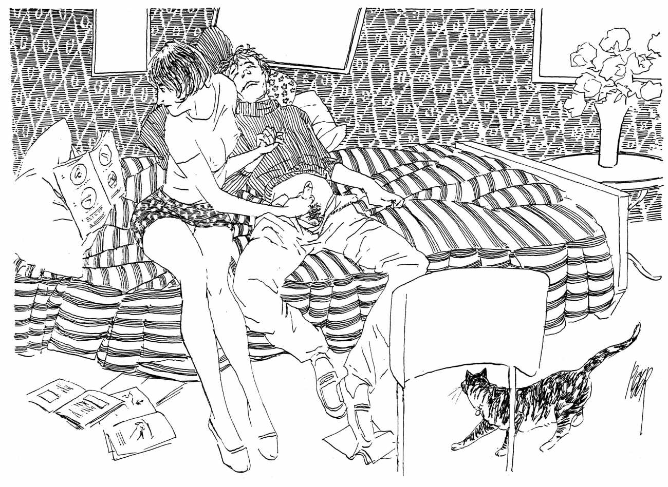 The series Doe ik ’tgoed? (Am I Doing Well?) was his first foray into illustrating relationships and sexuality, and between 1984 and 2000 he drew a weekly comic strip about a single woman called Agnes. His work was featured in comic books and a yearly calendar, Peter’s Zeurkalender (Peter’s Nagging Calendar).