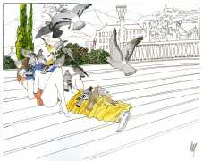 The Dutch cartoonist and illustrator Peter van Straaten was for more than half a century one of Holland’s best-known and best-loved artists, commenting freely and acerbically on every aspect of the ways in which ordinary people handle modern life. Born in Arnhem, he studied at the Gerrit Rietveld Academie in Amsterdam and started his career in 1958 for the Dutch newspaper Het Parool, where he illustrated news reports and produced political cartoons. From 1968 to 1987 he published a daily comic strip, Vader en Zoon (Father and Son), which became a huge success and inspired a television series.