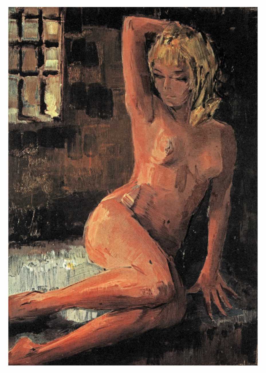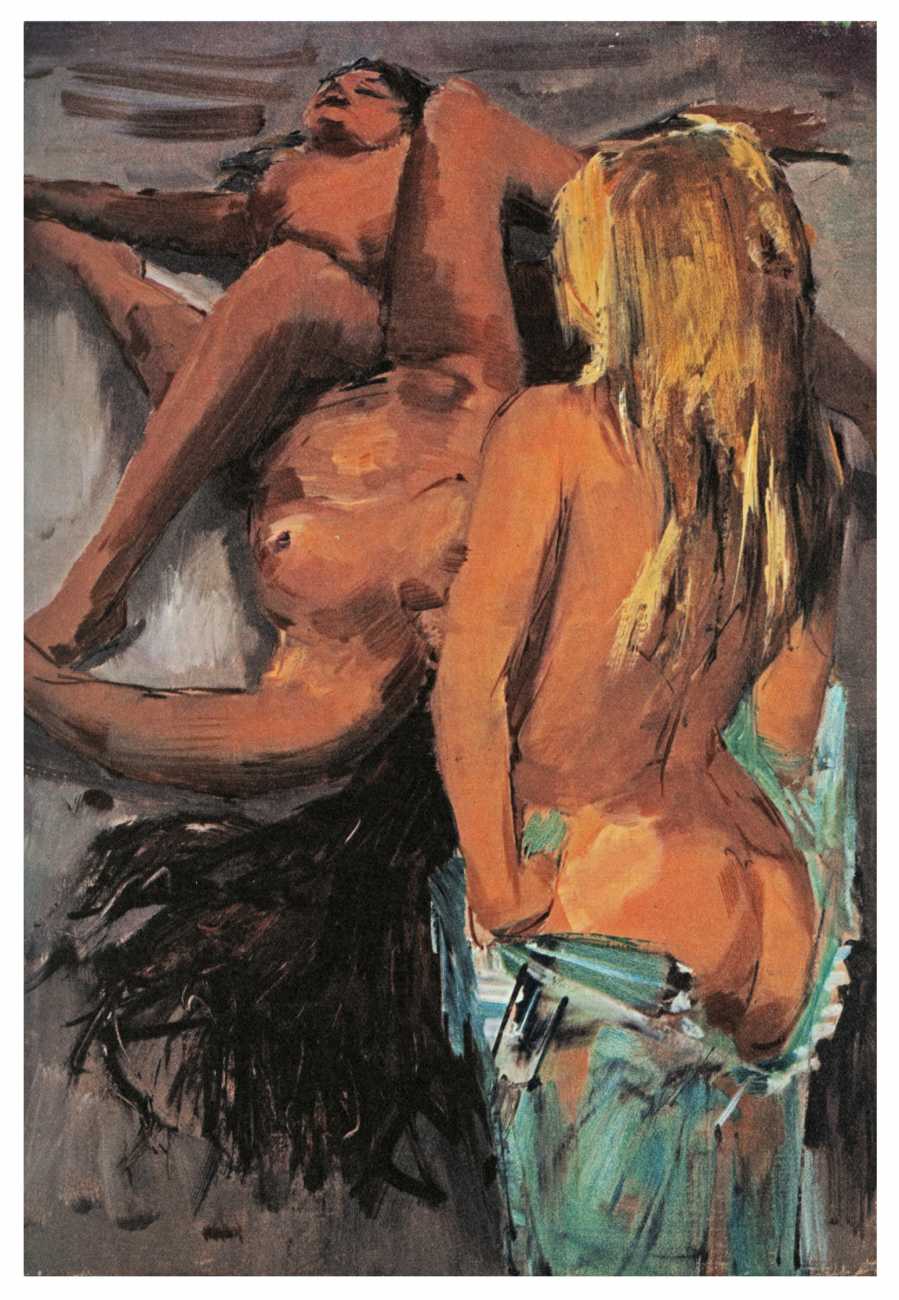 He illustrated just two books which went well beyond his usual repertoire – the Amores of Ovid, included here, and an edition of Pierre Louÿs’ Aphrodite included in the Éditions d’Ibis collected Louÿs in 1972. As you can see, his Aphrodite illustrations, made from paintings, are rather lurid and mediocre; maybe he knew that, and the Amores published a year later made up for it.