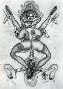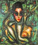 Pierre Molinier was deeply influenced by the fields of esotericism, magic and shamanism, the character of the shaman arousing his interest because of its ambiguity, neither man nor woman, the messenger between the world of the living and that of the dead. From the mid-1950s Molinier devoted himself to photography, a medium in which he explored his subconscious transsexual desires. He created black and white photographs in which he assumed the roles of dominatrix and succubus previously assumed by the women in his paintings. He wanted his photographs to shock.