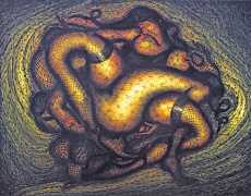 For the 1951 Salon des Indépendants, Molinier submitted ‘Le grand combat’ (The Great Confrontation), a half-abstract, half-figurative painting depicting contorted bodies and entwined limbs. The Bordeaux society deemed it indecent and censored it, which elicited a furious response from the incensed artist.
