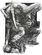 It was his experiences in the First World War that drew Freida towards his dark lithographic work. Though as a nurse at the Centre for Maxillofacial Surgery in Lyon he did not see the carnage first hand, Freida was requested by Dr Albéric Pont to draw facially injured people for a medical portfolio titled Les misères de la guerre (The Miseries of War), poignant portraits of men whose lives had been changed forever through the destruction of warfare.