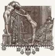 Between 1903 and 1929 Frieda regularly exhibited his works at the Salon of the Société des Artistes Français, winning a gold medal at the International Exhibition of Decorative Arts in Nice in 1929. After the war he returned to his illustration work, producing the two portfolios we have included here, Anatole France’s Thaïs in 1924 and Octave Mirbeau’s Le jardin des supplices in 1927.