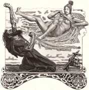 Starting with the facts, Raphaël Freida was a French painter, poster artist, and illustrator, who grew up in Digne in Provence. After studying at the École Nationale des Beaux-arts de Lyon from 1892 to 1899 he settled in Paris, where he was a student of Jean-Paul Laurens. He started work as a cartoonist for Félix Gaudin’s stained glass factory, and worked on many stained glass windows around the world for the next ten years. Gradually he moved into illustration, producing advertising posters for Camis & Cie, and receiving book commissions, starting with a deluxe edition of Leconte de Lisle’s Poèmes barbares for the Paris publisher Romagnol.