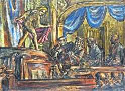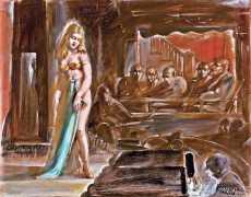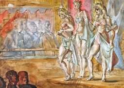 Reginald Marsh rejected modern art, which he found sterile. His work depicted the Great Depression and a range of social classes whose division was accentuated by the economic crash. His main attractions were the burlesque stage, the hobos on the Bowery, crowds on city streets and at Coney Island, and women.