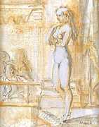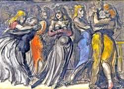 Marsh then studied under Kenneth Hayes Miller at the Art Students League of New York, who looked at Marsh’s early, awkward burlesque sketches and at his more conventional landscape watercolours, and told him ‘These awkward things are your work. These are real. Stick to them and don’t let anyone dissuade you!’