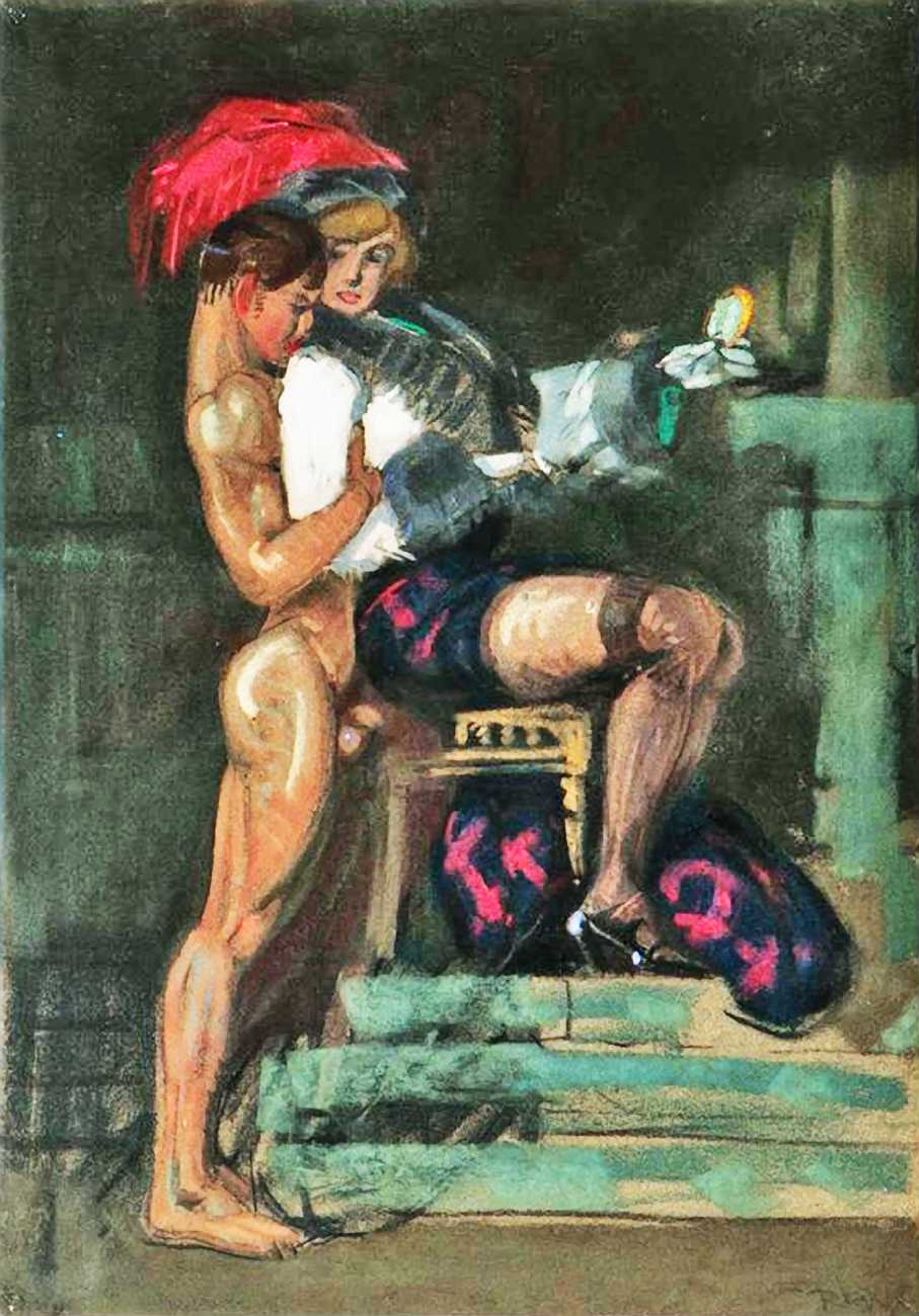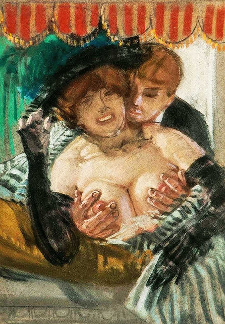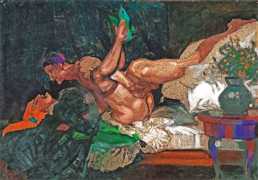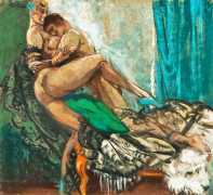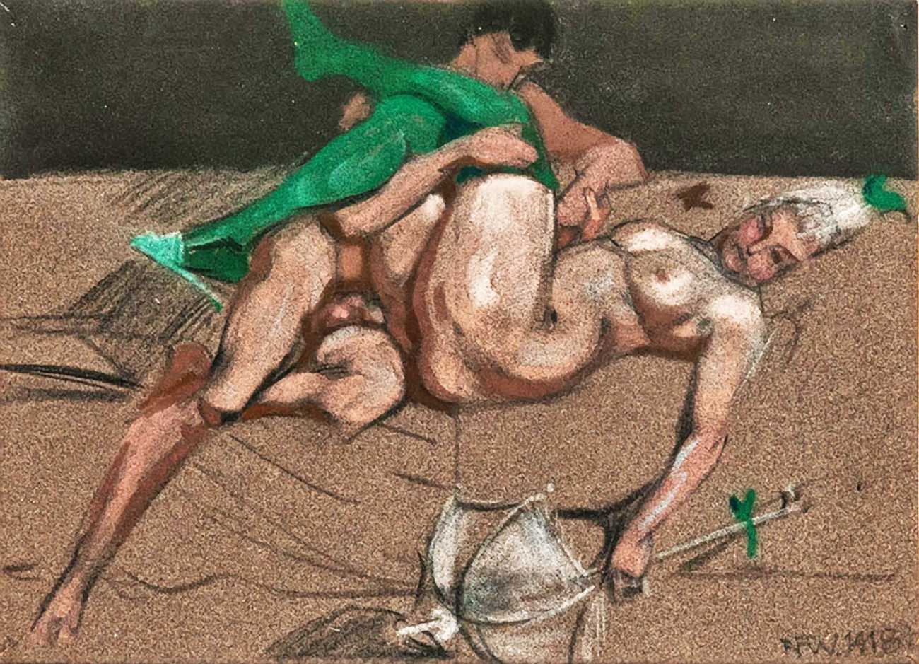 At first he worked as a freelance artist, and gradually became known for his colourful scenes of the Berlin underworld. Sadly he injured his right hand badly during the First World War, so after the war he trained as an art teacher, graduating in 1919. The same year he married Olga Huber from Vienna, who was also an artist, and they had two children.