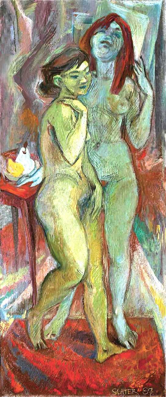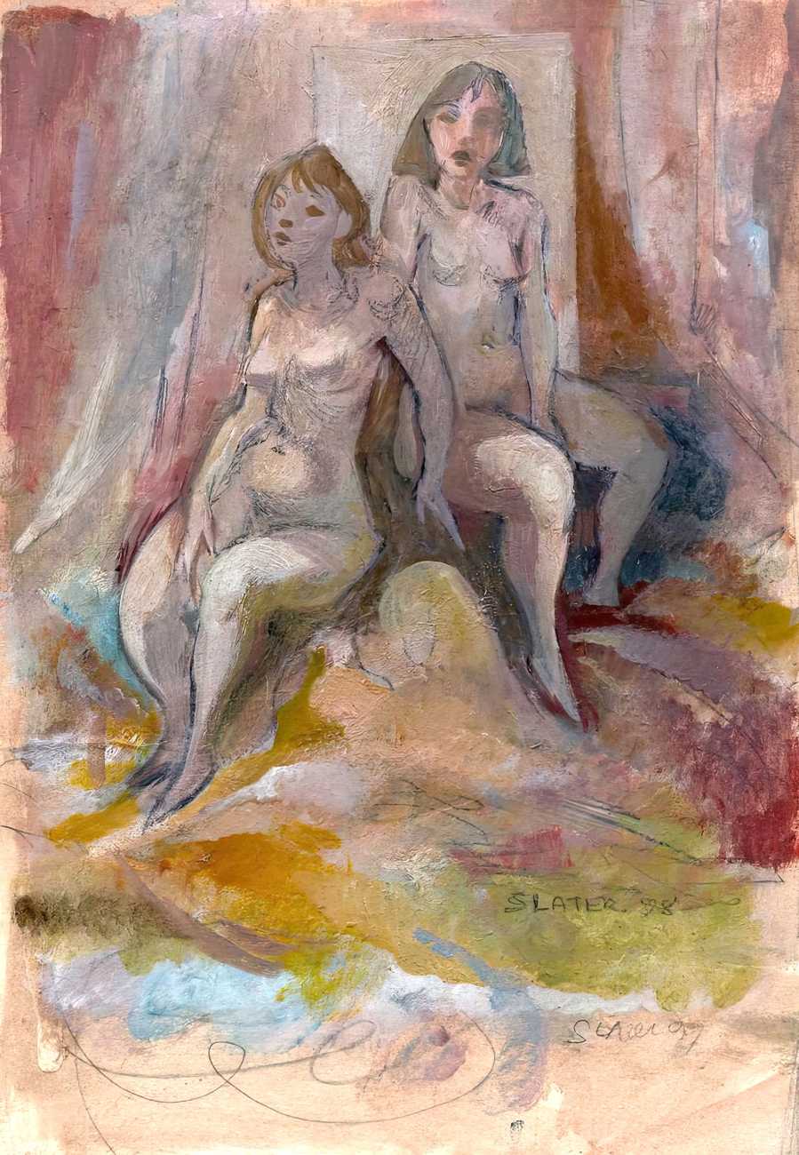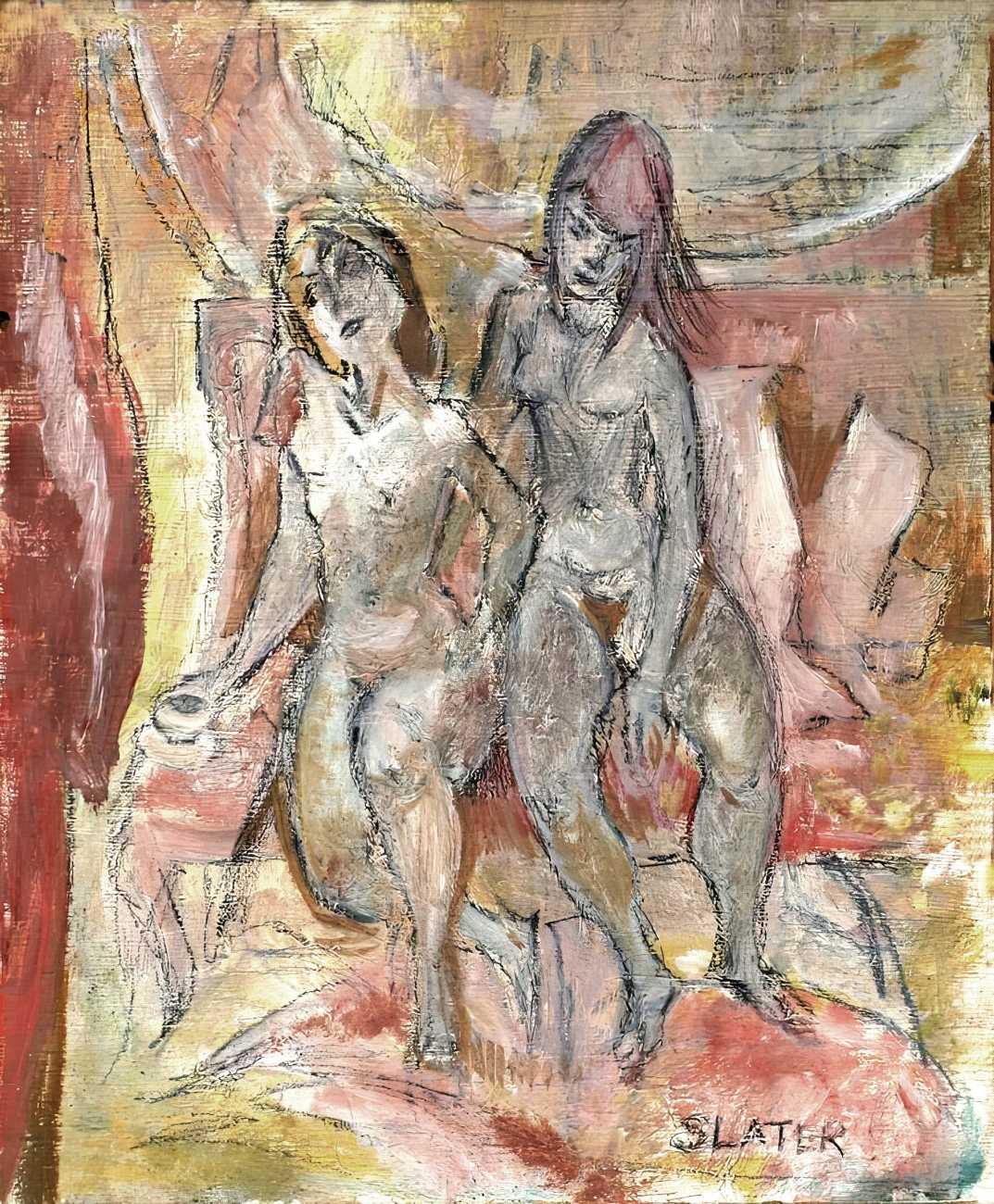 After the war Slater studied at the Cooper Union School of Art in New York, and for many years worked as an Illustrator, before becoming a dealer in primitive antiques. After he had retired, from 1980 to 1995 he turned his artistic talents to oil on canvas, eventually completed more than ninety works prior to his death in Suffern, New York.