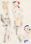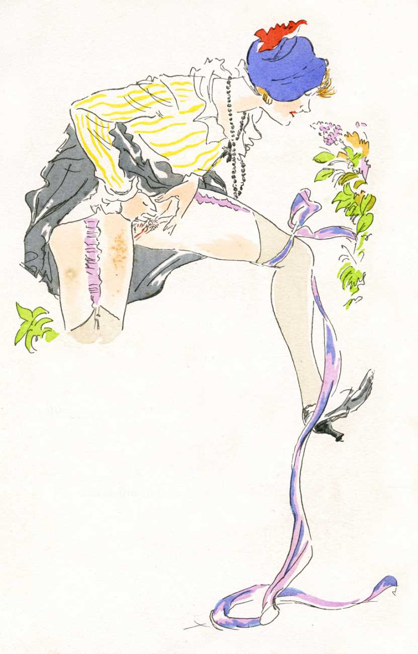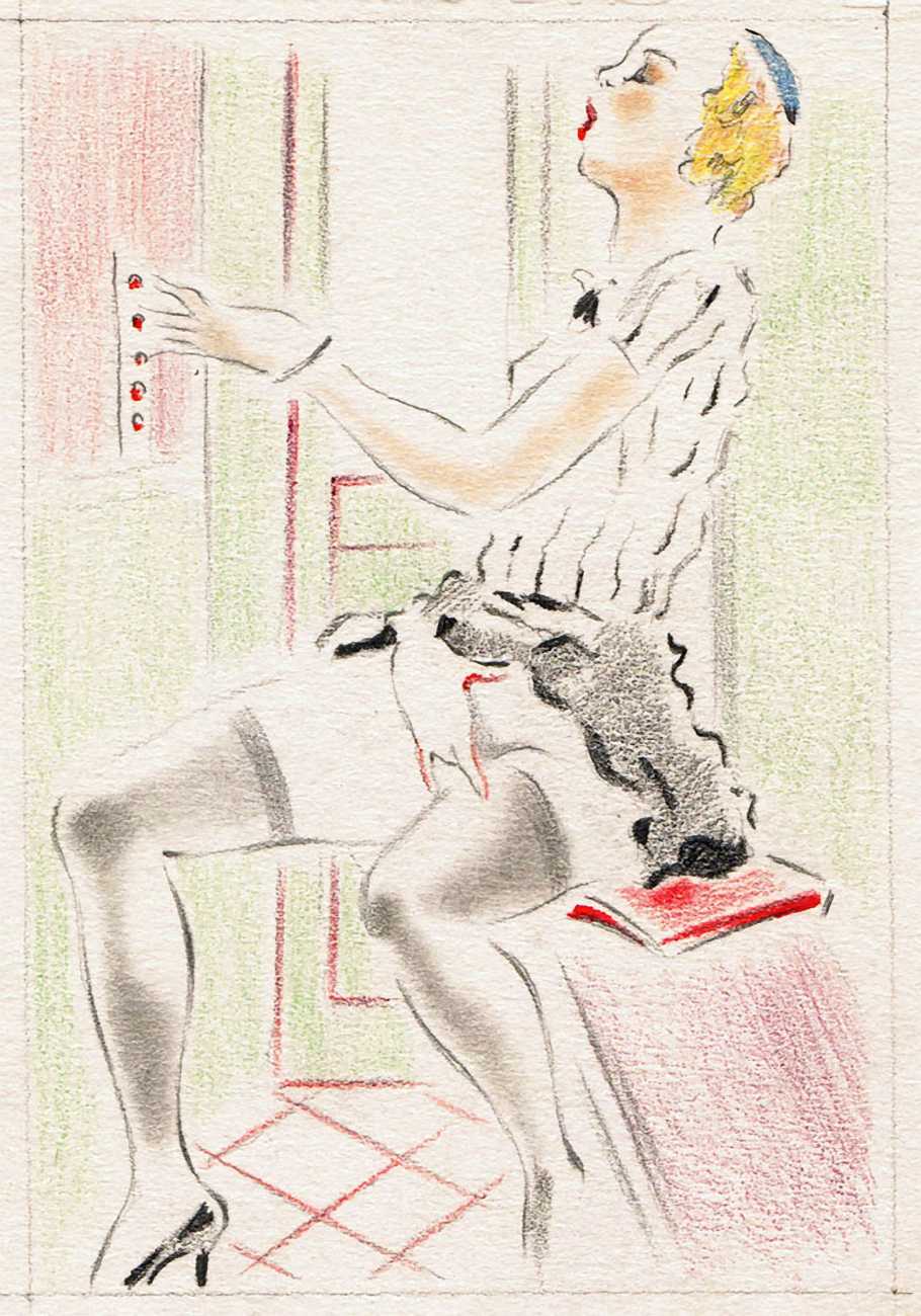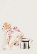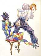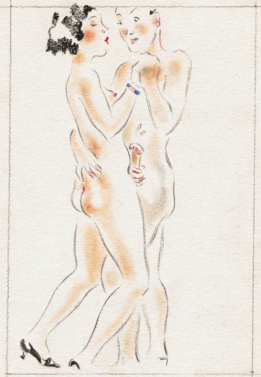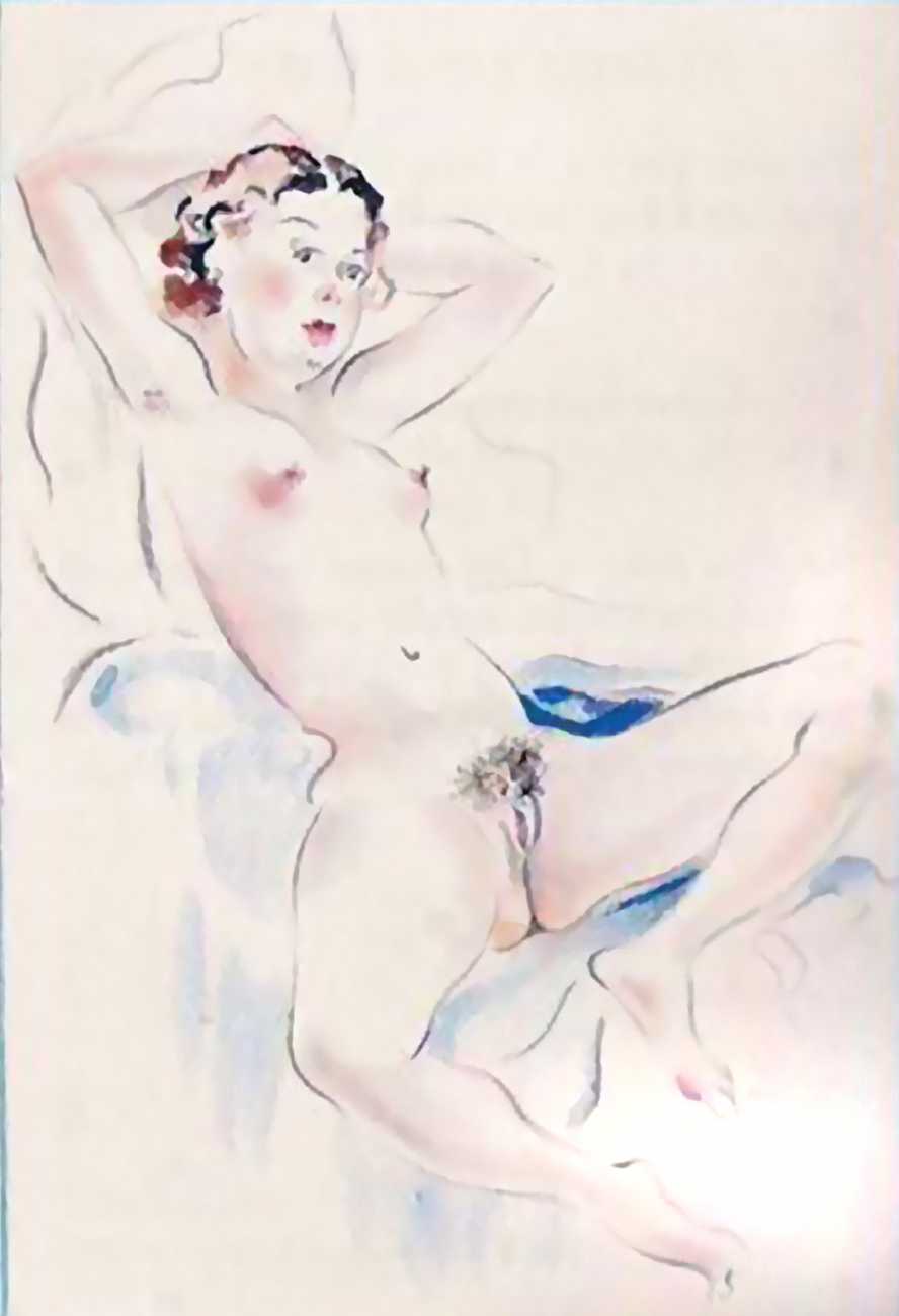 Rojankovski’s life neatly divides into three periods, the Russia/Poland years up until 1925; the Paris period from 1925 to 1941; and the rest of his life in America. All were characterised by an incredible productivity, and each contributed to his distinctive, brightly-coloured, spirited and stylish art. Here we concentrate on the erotic portfolios of his Paris years, though the list of works below shows that Rojan (the shortened version of his name he adopted when he arrived in France) was still producing some erotica after his wartime exodus to the USA.