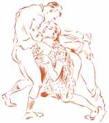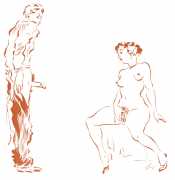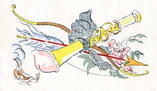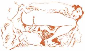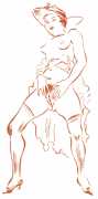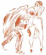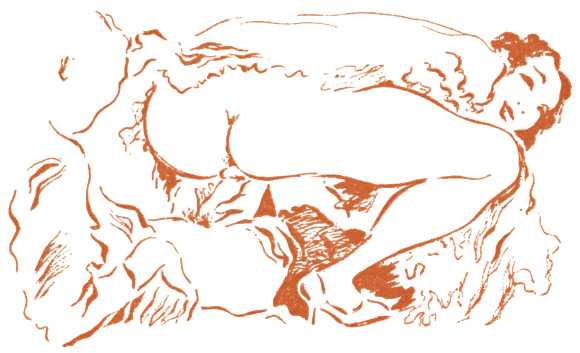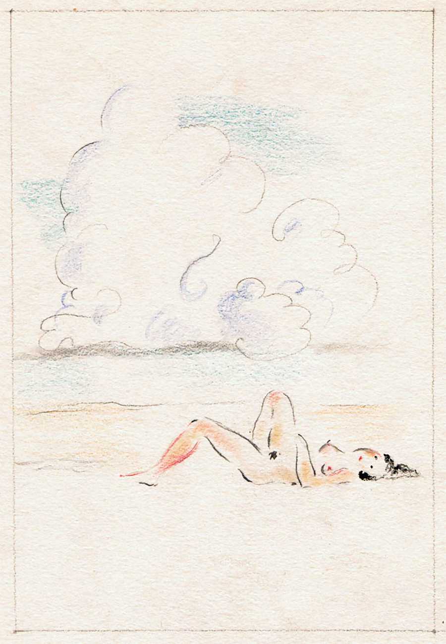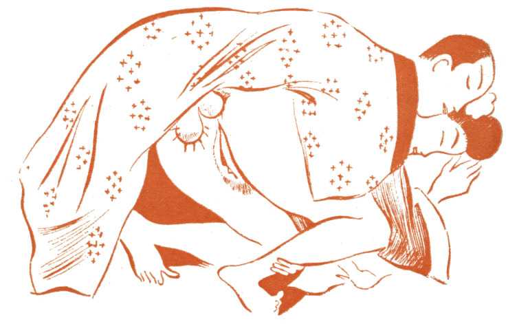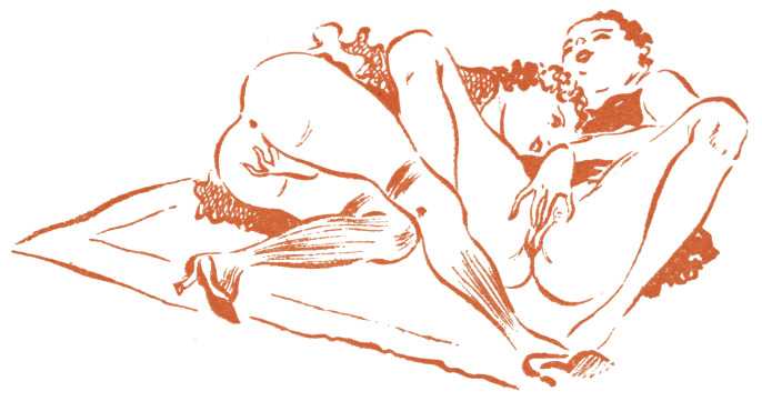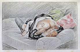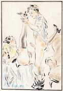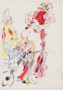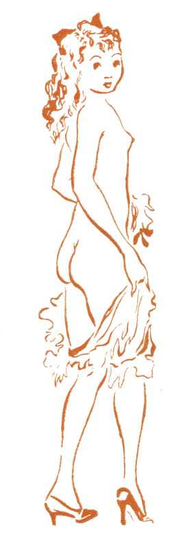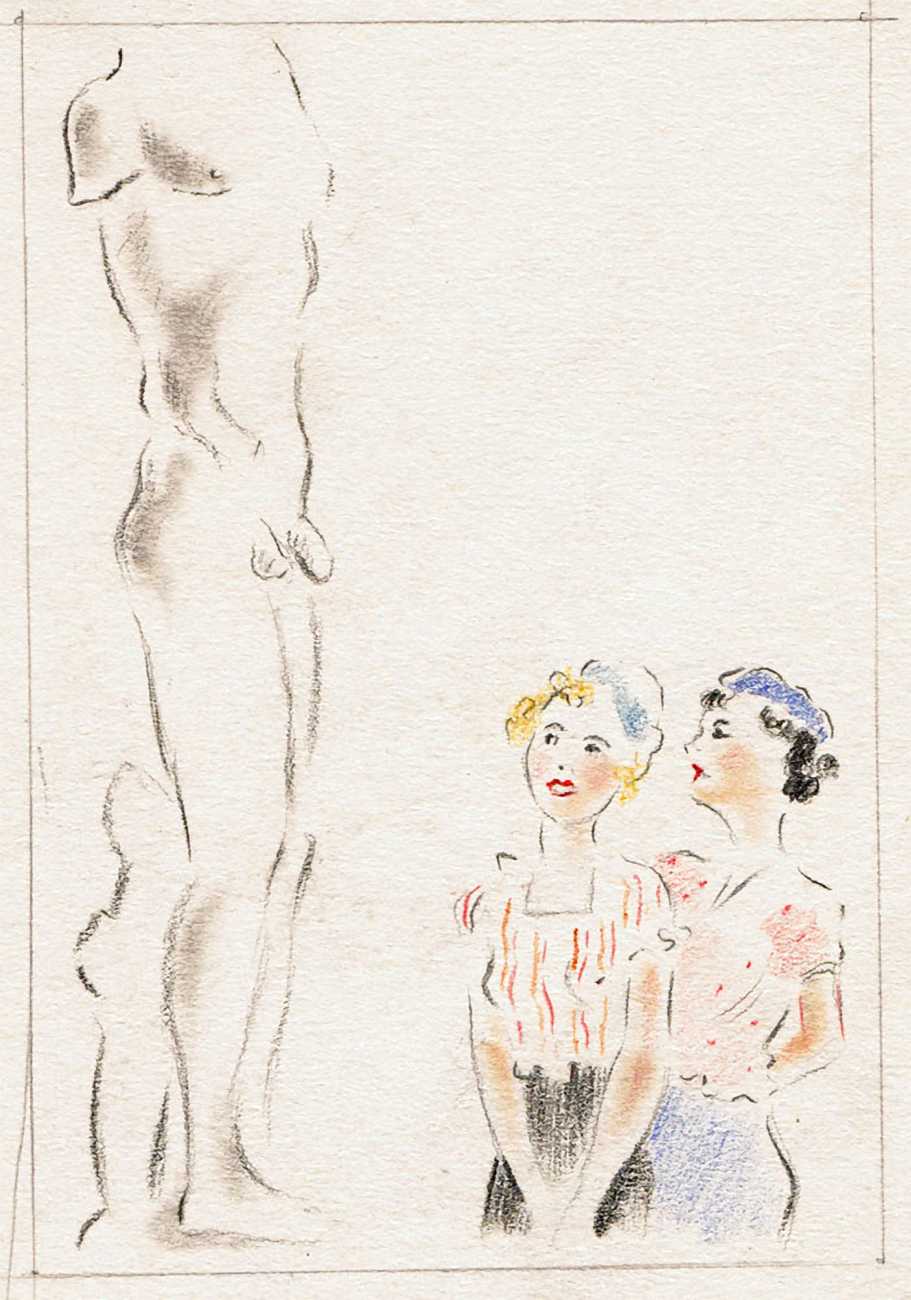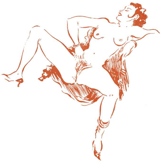 In 1930 Rojankovsky and a friend from his time in the Ukraine after the Revolution, the Russian sculptor Lev Schultz, took a trip to Algiers. Rojankovsky kept snapshots of himself and Schultz in a local park with a pretty algérienne model, she obligingly in native costume. It was surely she who posed in a harem outfit, bare-breasted, baggy pantaloons and all, for Rojan to paint; he reworked one such figure study for Béranger’s Chansons galantes.
