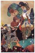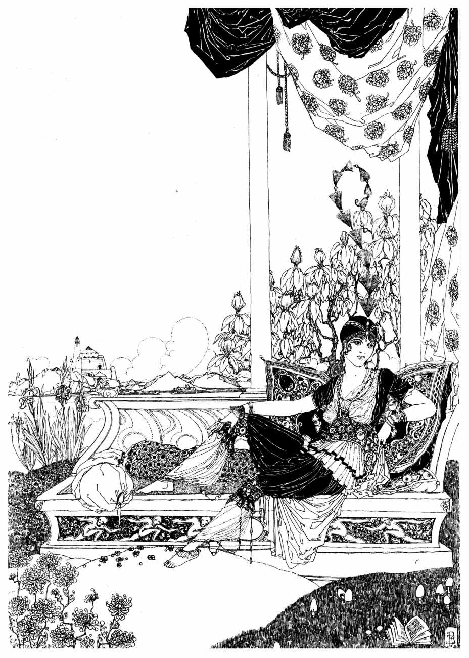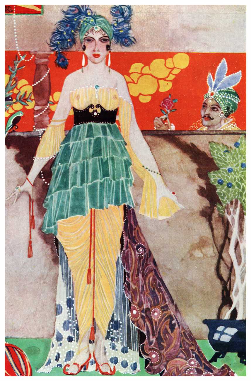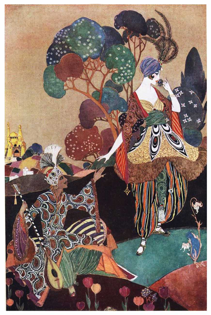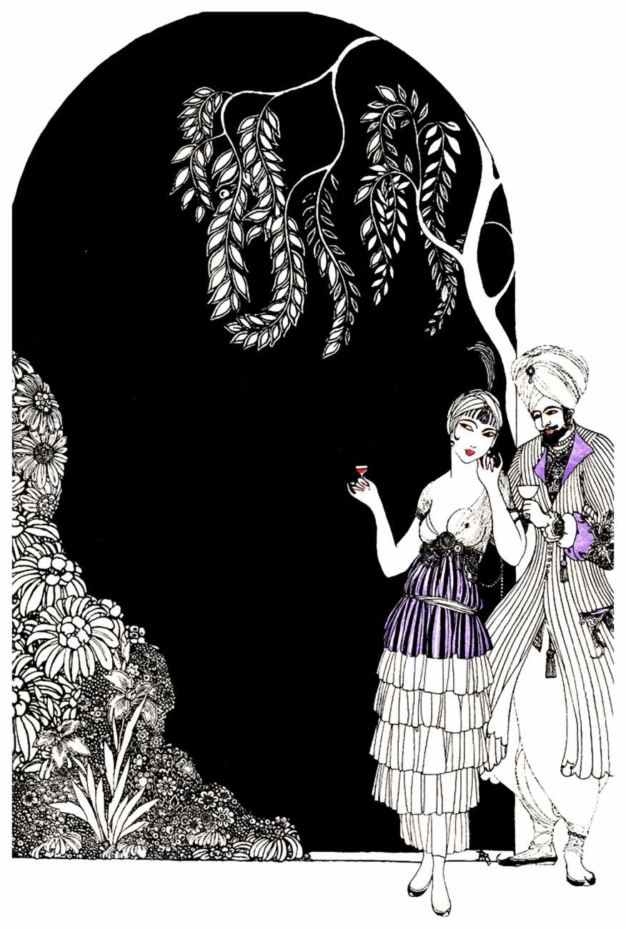 However, unknown to many of his circle he was also a talented amateur artist and costume designer. In the later arena he designed several original costumes for the Great Dazzle Ball of the Chelsea Arts Club in February 1919, and worked with Samuel Soden, a London firm of court furriers. As a self-taught artist, as early as 1913 he was inspired by reading the FitzGerald translation of the Persian classic The Rubáiyát of Omar Khayyám to start producing sketches, and it was probably through family connections that these reached the editorial desk at the London publishing firm of Constable, leading to the commission to produce a complete set of Rubáiyát illustrations for a luxury edition for the Christmas 1920 market.