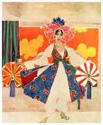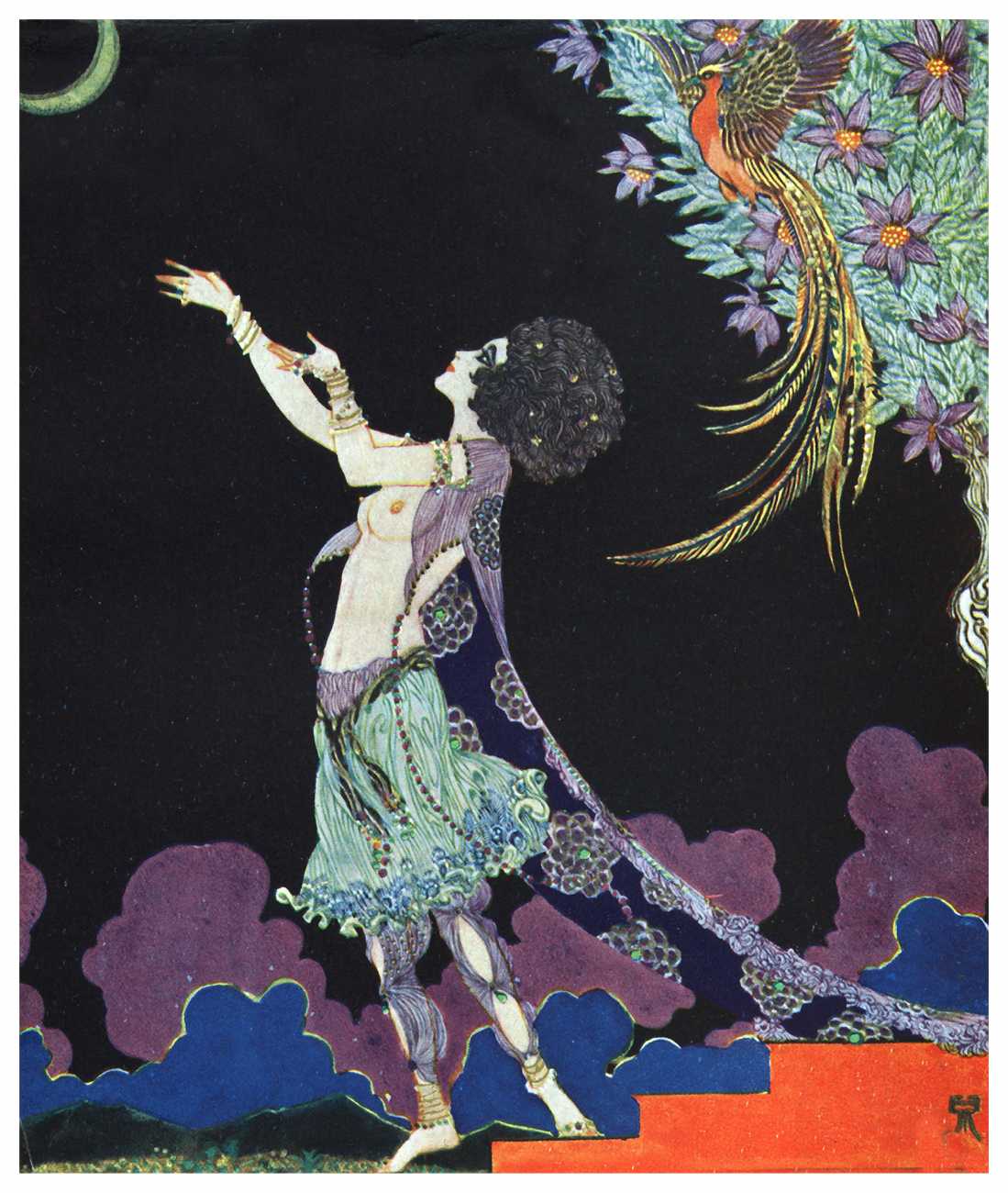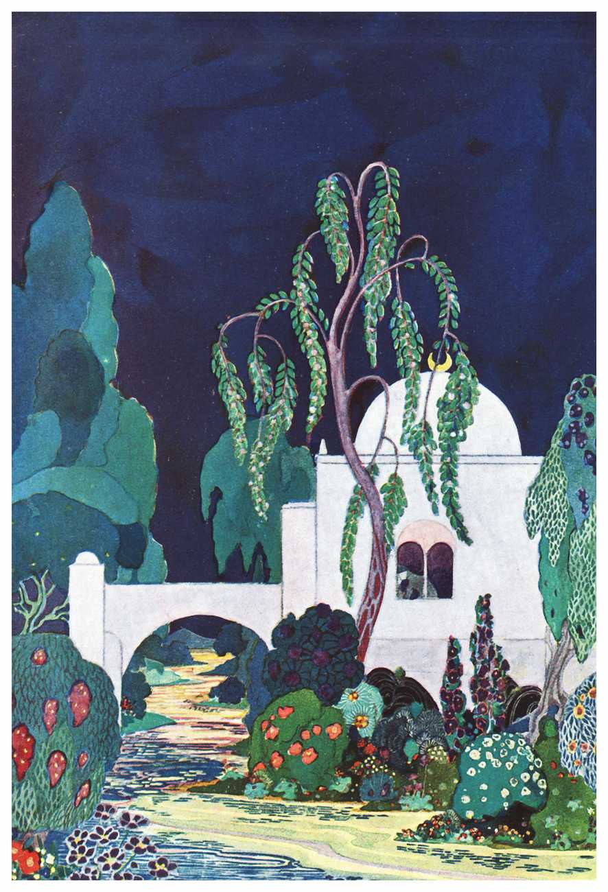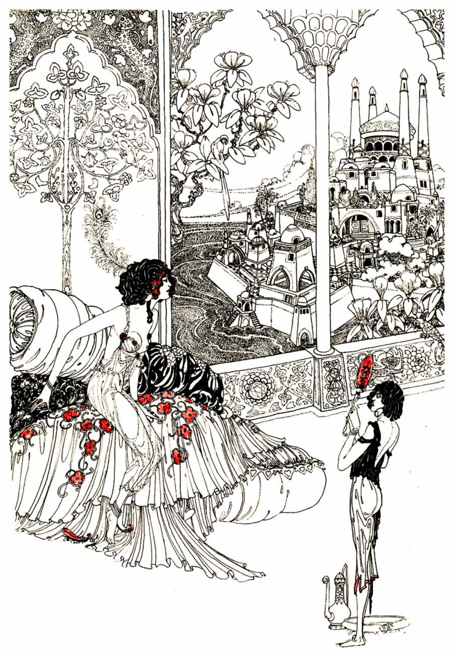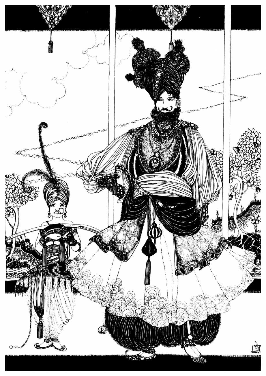 However, unknown to many of his circle he was also a talented amateur artist and costume designer. In the later arena he designed several original costumes for the Great Dazzle Ball of the Chelsea Arts Club in February 1919, and worked with Samuel Soden, a London firm of court furriers. As a self-taught artist, as early as 1913 he was inspired by reading the FitzGerald translation of the Persian classic The Rubáiyát of Omar Khayyám to start producing sketches, and it was probably through family connections that these reached the editorial desk at the London publishing firm of Constable, leading to the commission to produce a complete set of Rubáiyát illustrations for a luxury edition for the Christmas 1920 market.