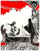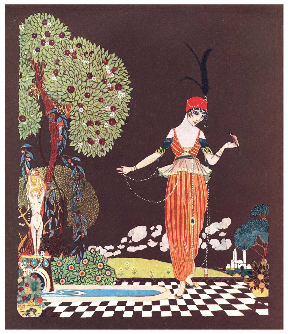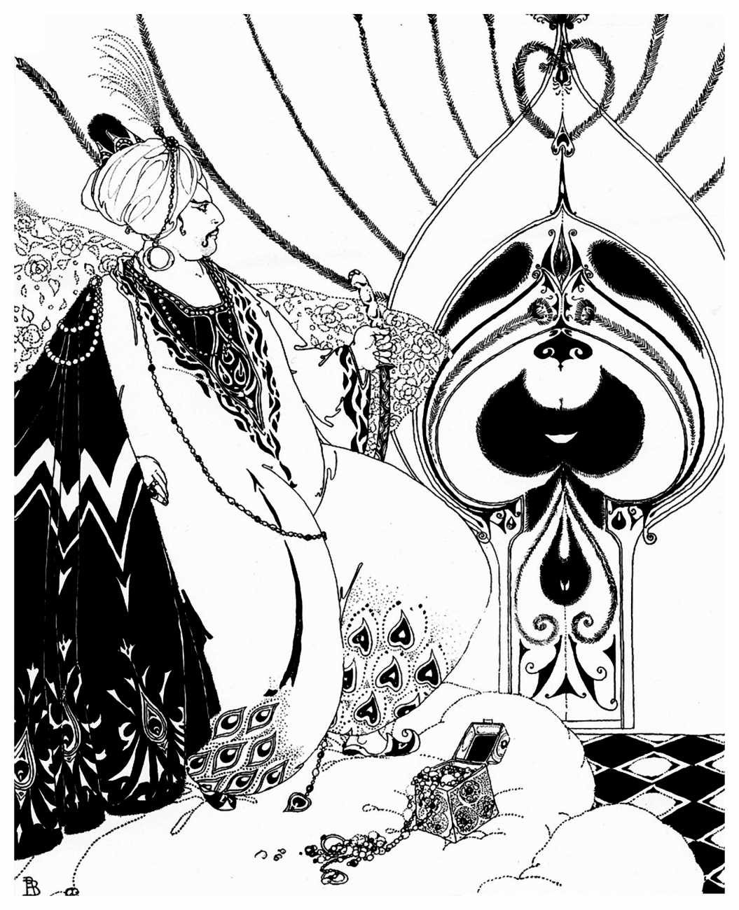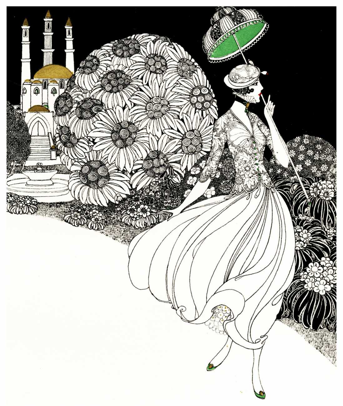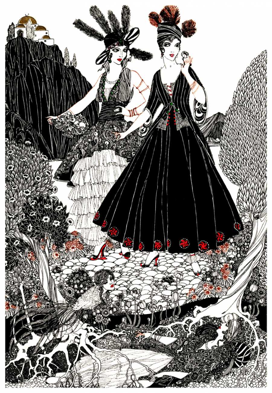 However, unknown to many of his circle he was also a talented amateur artist and costume designer. In the later arena he designed several original costumes for the Great Dazzle Ball of the Chelsea Arts Club in February 1919, and worked with Samuel Soden, a London firm of court furriers. As a self-taught artist, as early as 1913 he was inspired by reading the FitzGerald translation of the Persian classic The Rubáiyát of Omar Khayyám to start producing sketches, and it was probably through family connections that these reached the editorial desk at the London publishing firm of Constable, leading to the commission to produce a complete set of Rubáiyát illustrations for a luxury edition for the Christmas 1920 market.