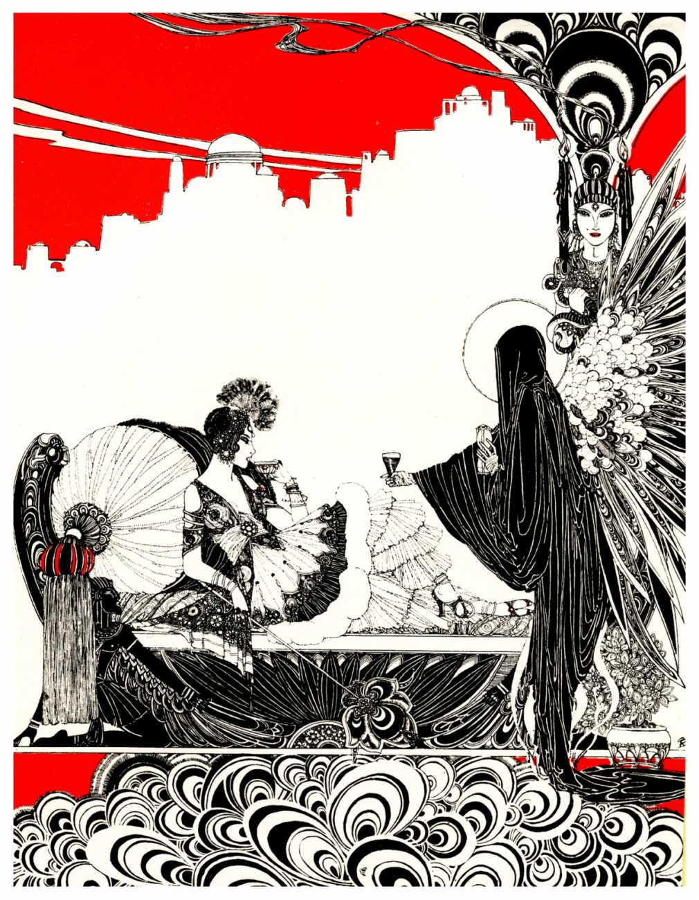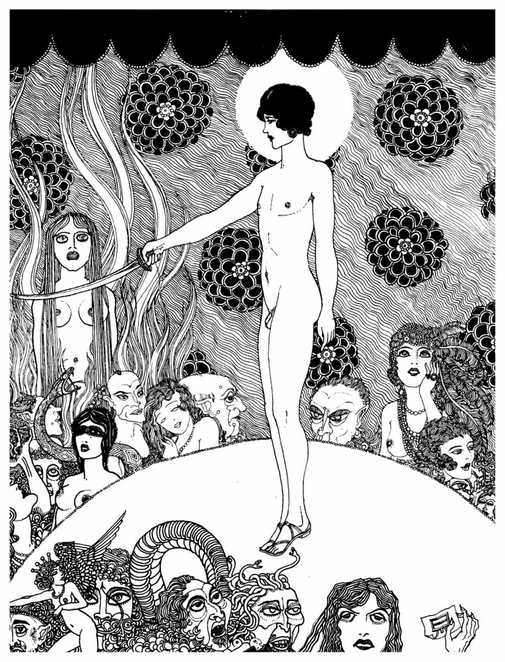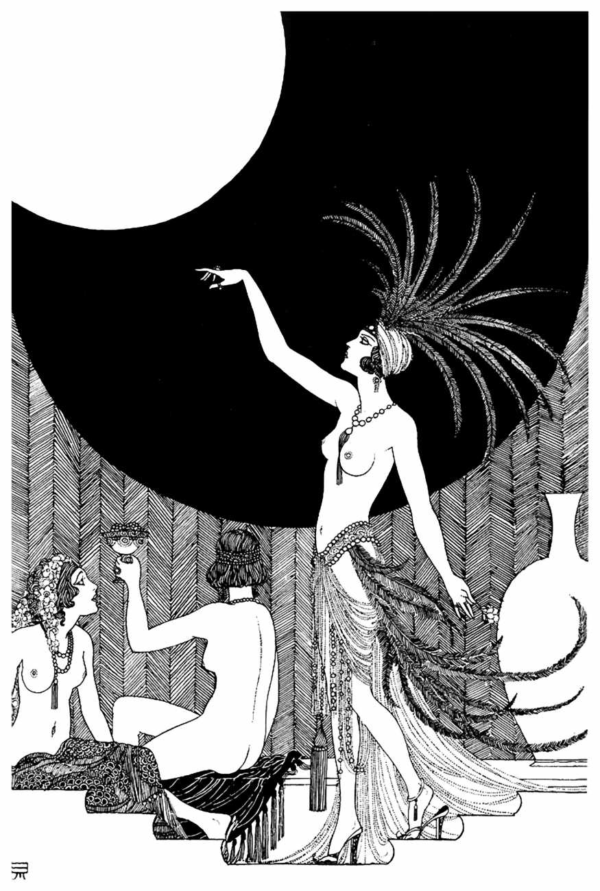 Constance Bridges gives us a telling anecdote about Ronald Balfour’s art: ‘He sketched steadily – a series of imaginative fantasies. His specialty was naked women. When we expressed solicitude over this symptom of a dangerous suppression, he would grin guiltily with his cigarette drooping from his upper lip and go on placidly creating his paper harem. His left hand sufficed if he was half-hearted about it; but when he was absorbed by the intricacies of a Beardsleyesque pattern, he used both hands on opposite corners of the design, to the respectful wonder of the rest of us.’