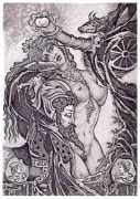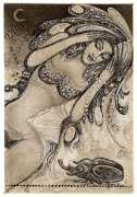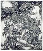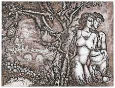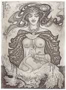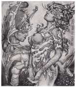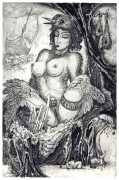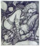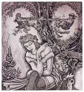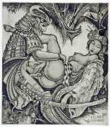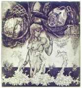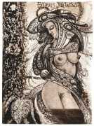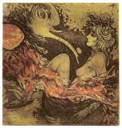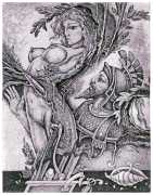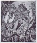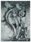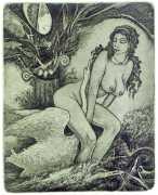 More than a decade ago the Russian-born Ukrainophile artist Ruslan Agirba explained in an interview that ‘The most interesting and noteworthy events take place, and will always take place, in the name of love.’ Sadly the events of that last decade have stretched his optimism to the limit, but have detracted nothing from the power of his creative imagination. The main theme of Agirba’s work remains the embodiment of love, particularly of female beauty, using a variety of myths and stories as settings for his richly decorated etchings.