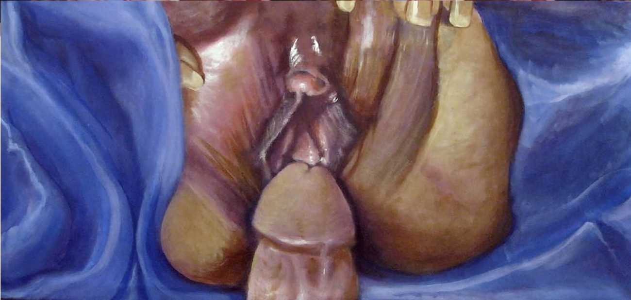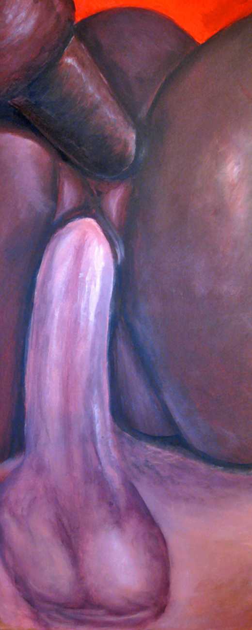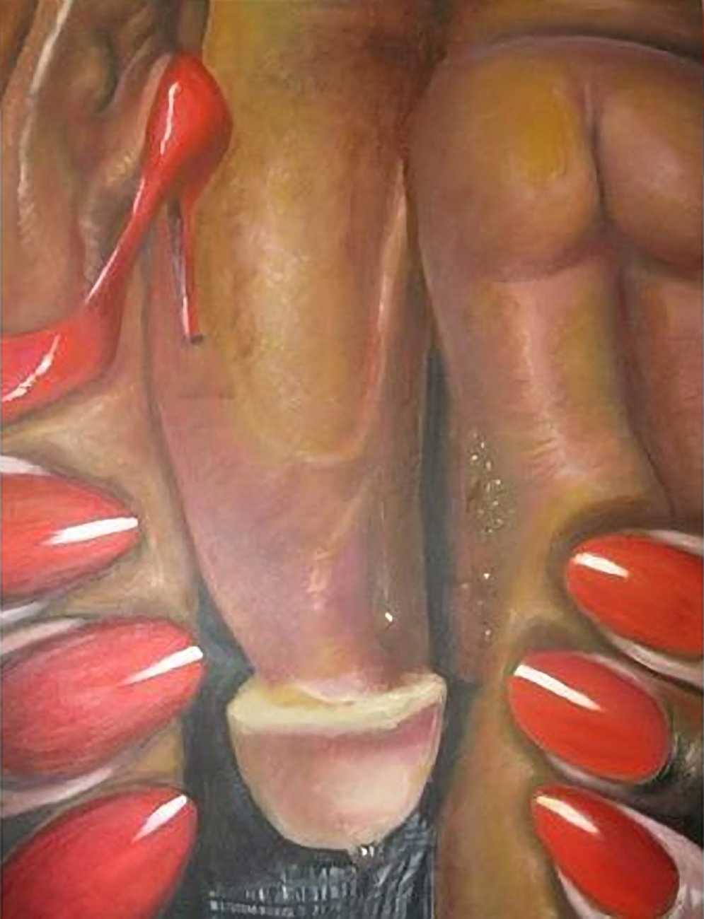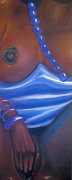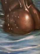 The British artist Ruth Bircham grew up in Stoke on Trent, and studied Fine Art and Combined Media at Croydon College from 2001 to 2005. Citing the most important influences on her art as Renaissance, Impressionist, Abstract Realism and Corporeality, her trademark paintings often feature close-up studies of the naked human body, with an emphasis on the ‘forbidden fruit’ of breasts and genitals. She is also firmly rooted in her Nigerian heritage, explaining that as a black woman she celebrates black history, but that history cannot dictate her work: ‘Our hands may once have been in chains, but we must not let our mind still be in chains.’