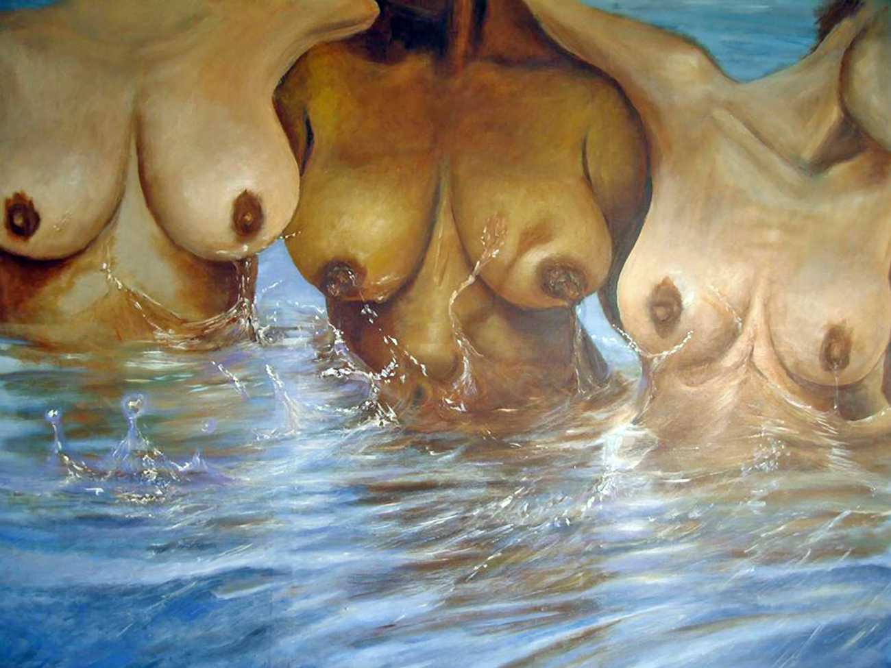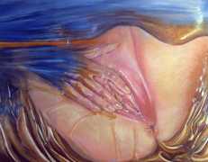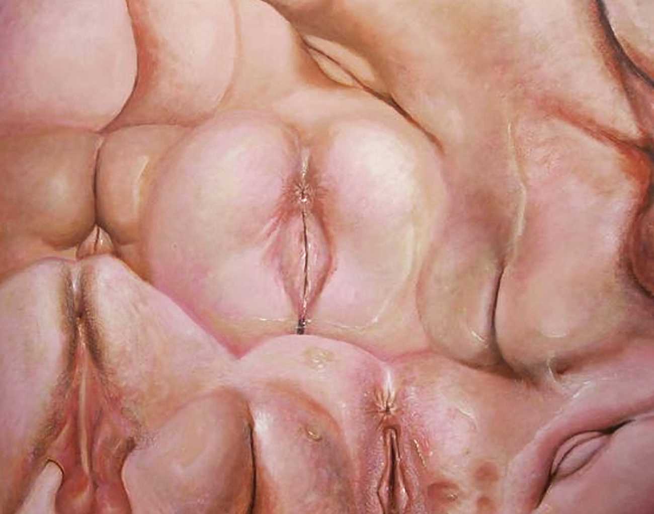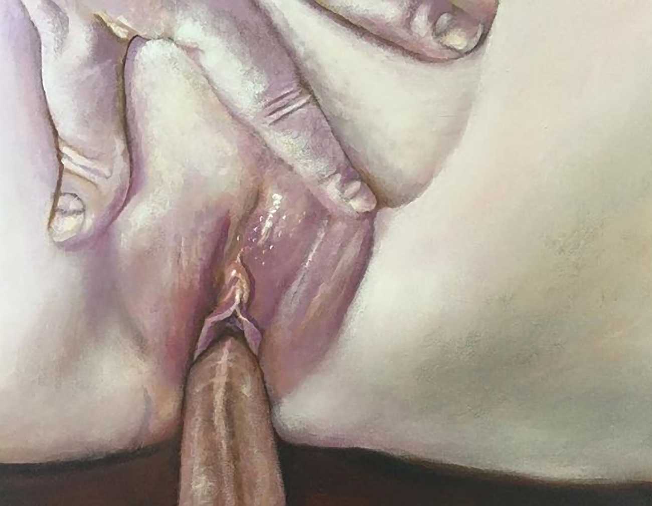 The British artist Ruth Bircham grew up in Stoke on Trent, and studied Fine Art and Combined Media at Croydon College from 2001 to 2005. Citing the most important influences on her art as Renaissance, Impressionist, Abstract Realism and Corporeality, her trademark paintings often feature close-up studies of the naked human body, with an emphasis on the ‘forbidden fruit’ of breasts and genitals. She is also firmly rooted in her Nigerian heritage, explaining that as a black woman she celebrates black history, but that history cannot dictate her work: ‘Our hands may once have been in chains, but we must not let our mind still be in chains.’