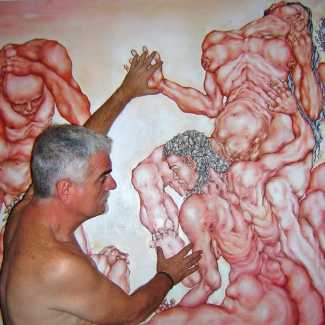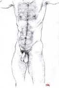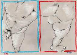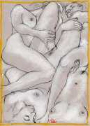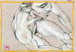 Bruno, who also uses the nom d’artiste Zozos, has written of his artistic quest ‘I have within me an agitation, a quivering, an excitement, an energy that accompanies me until I have transferred everything I have in my imagination onto paper or canvas. What I produce is an accumulation of sensations, of what is seen, what is taken hold of, of the beautiful, the less-than-beautiful, the full-bodied – everything and everyone I love. I see art essentially as a medium for the transmission of feelings, feelings which reaches their maximum expression in the representation of the body in all its forms. Thus in art the honest nude, the human body free from any covering, in its “beauty” or its “ugliness”, cannot lie and hide its emotions from itself or from others. It depicts the sensitivity and spirit of human existence, whether in this or in any era.’