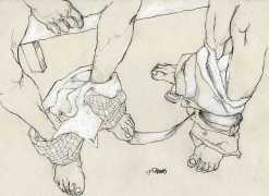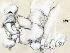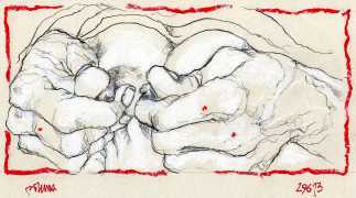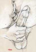 ‘Honest art arises from the accumulation of one’s own visual experiences, conscience, and knowledge of one’s own and others’ bodies. In conjunction with the intellect, it offers the expressive means of being both what one is and what one chooses to share.’ Thus writes the Italian artist Salvatore Bruno of his voluminous portfolio of drawings of the naked human body, especially the bits and interactions that most artists – and most life drawing students – choose not to dwell on.