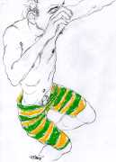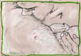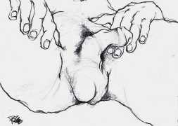 Whenever possible, he prefers to draw and paint naked himself, as he feels more in touch with his work when both artist and subject are unencumbered by clothes.