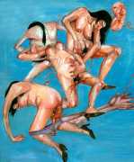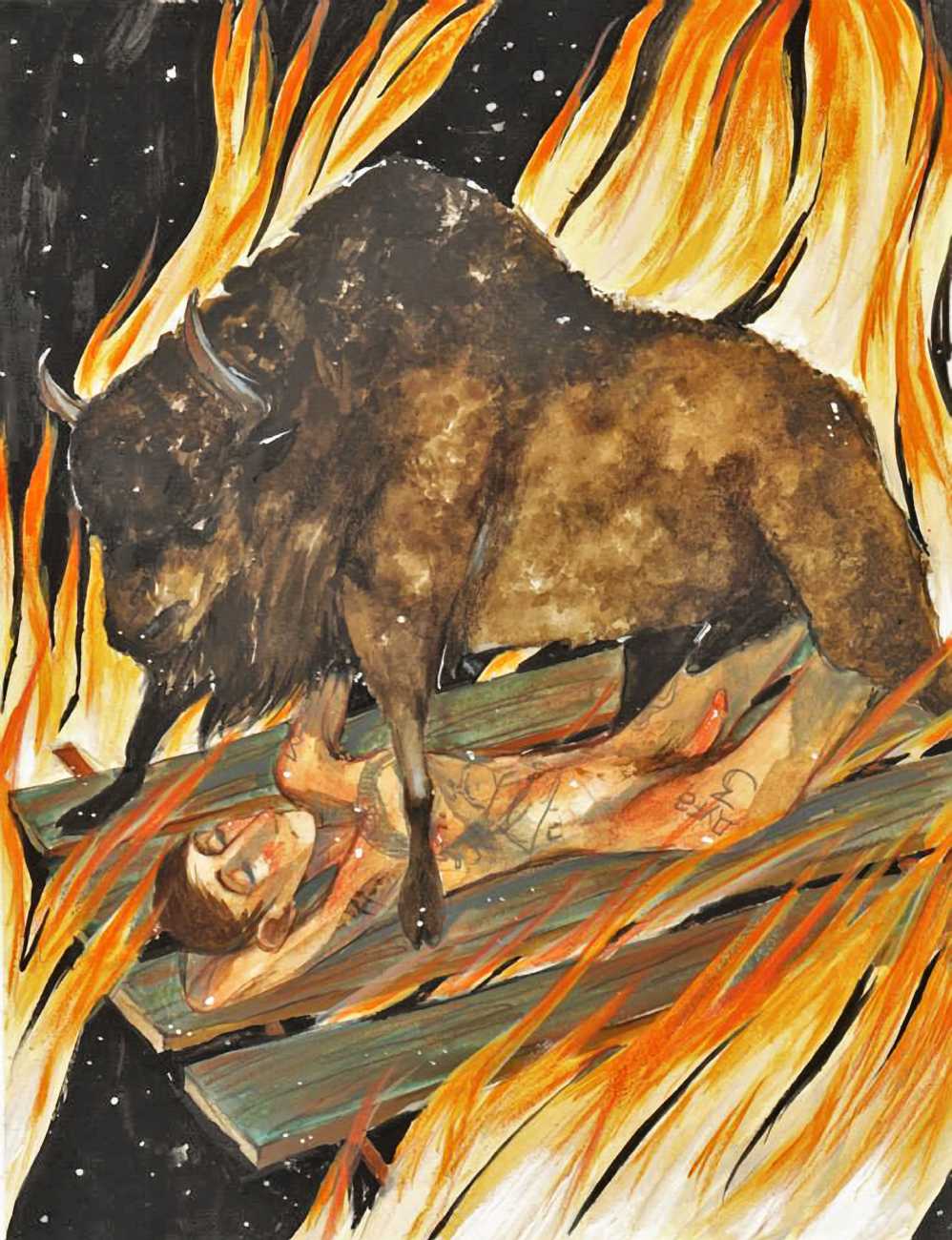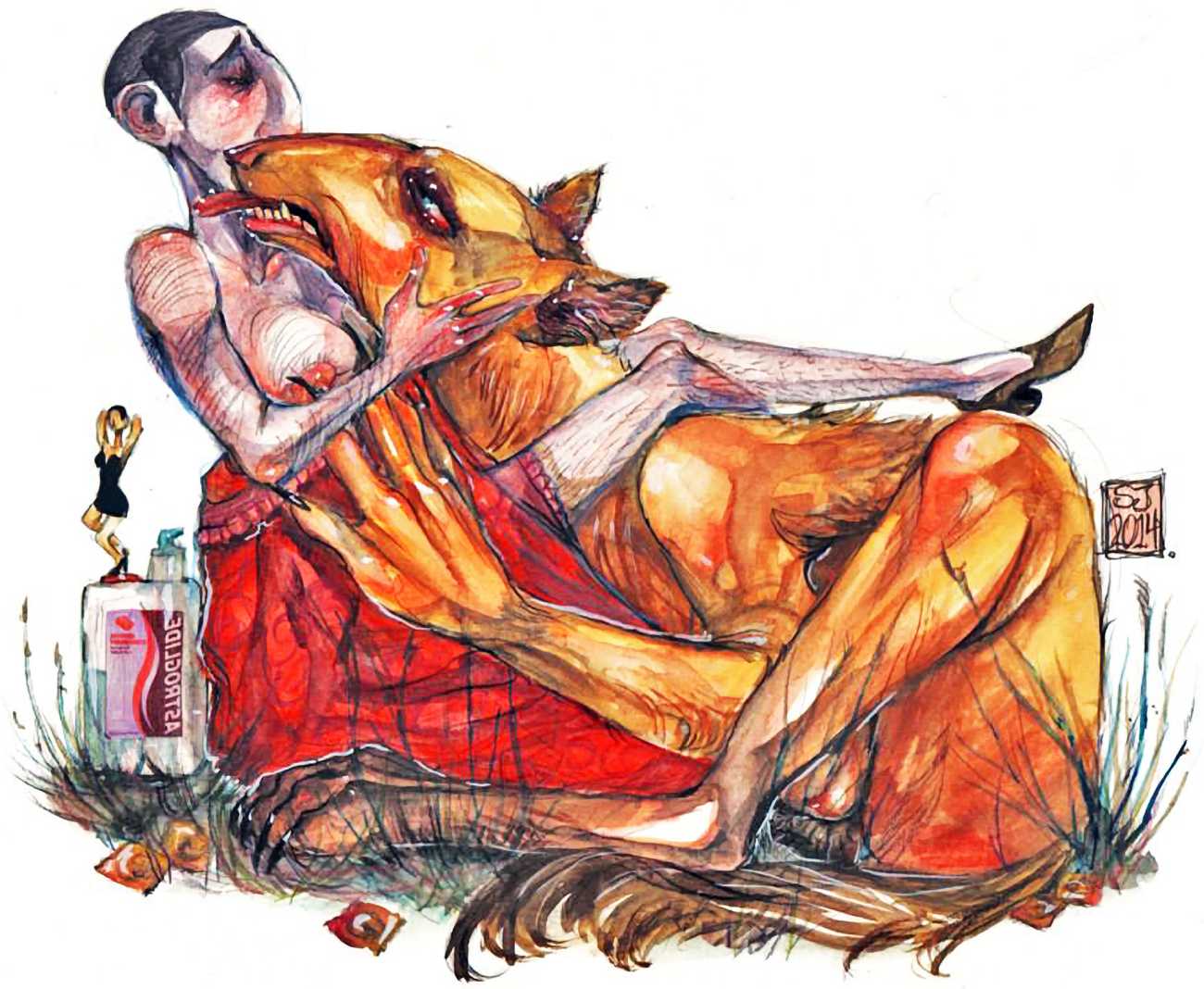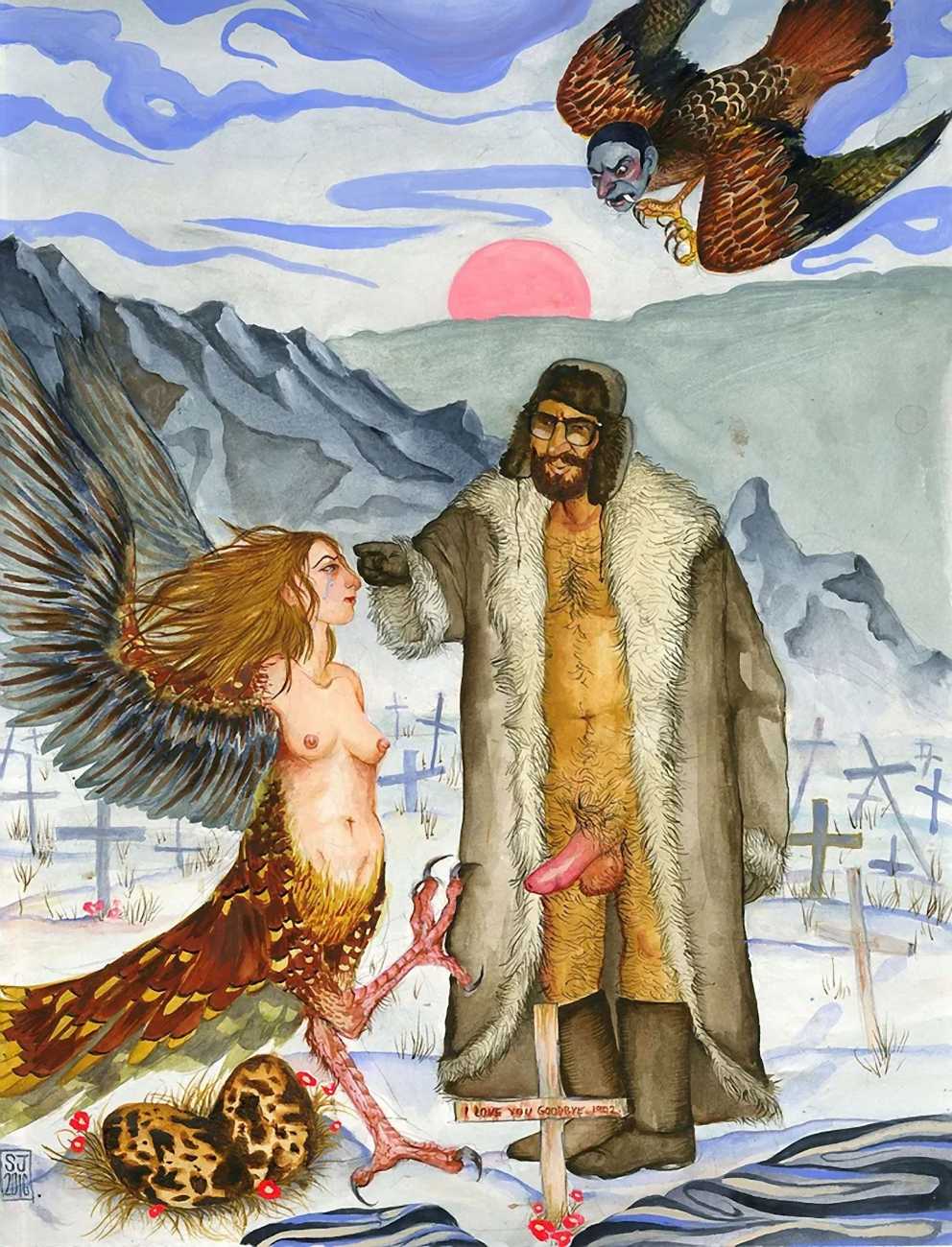 When asked what she most likes to paint and where she would like her career to go, she recently replied, ‘Though I’m rather unfairly known for my penises, my favourite body parts are the face, veins, and body hair. I’m a slut for male body hair. A lot of times I paint about the perfect romantic/sexual partner for myself, sometimes embodied as a minotaur or a fireman. If anybody wants to buy my paintings for thousands of dollars so I can quit my job, that would be great. If Sotheby’s can auction a banana taped to a wall for $400,000 and make some already rich white dude richer, why can’t it happen for me?’