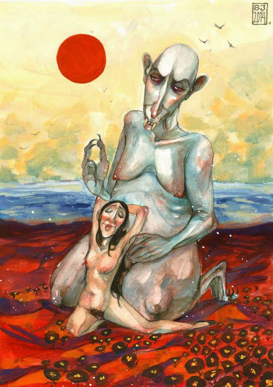 Surrealism, eroticism, history, current affairs, mythology and dreams create a rich mixture in Jackson’s work, and to her portfolio she has recently added the medium of tattoo.