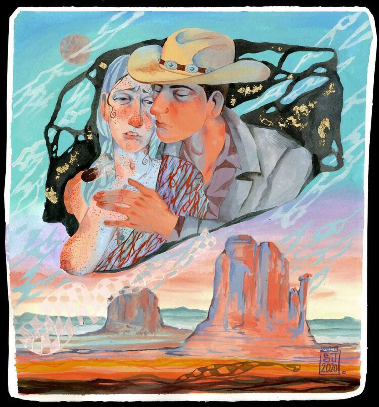 Sara Jackson (also known as Sara Lorelei Jackson, Sara Lorelei Gunchonski, and Sarajacksonjihad) is a talented and prolific Manhattan-based artist and tattooist who works from a rich array of inspirations to produce fresh and thought-provoking images full of colourful symbolism and social and political commentary.