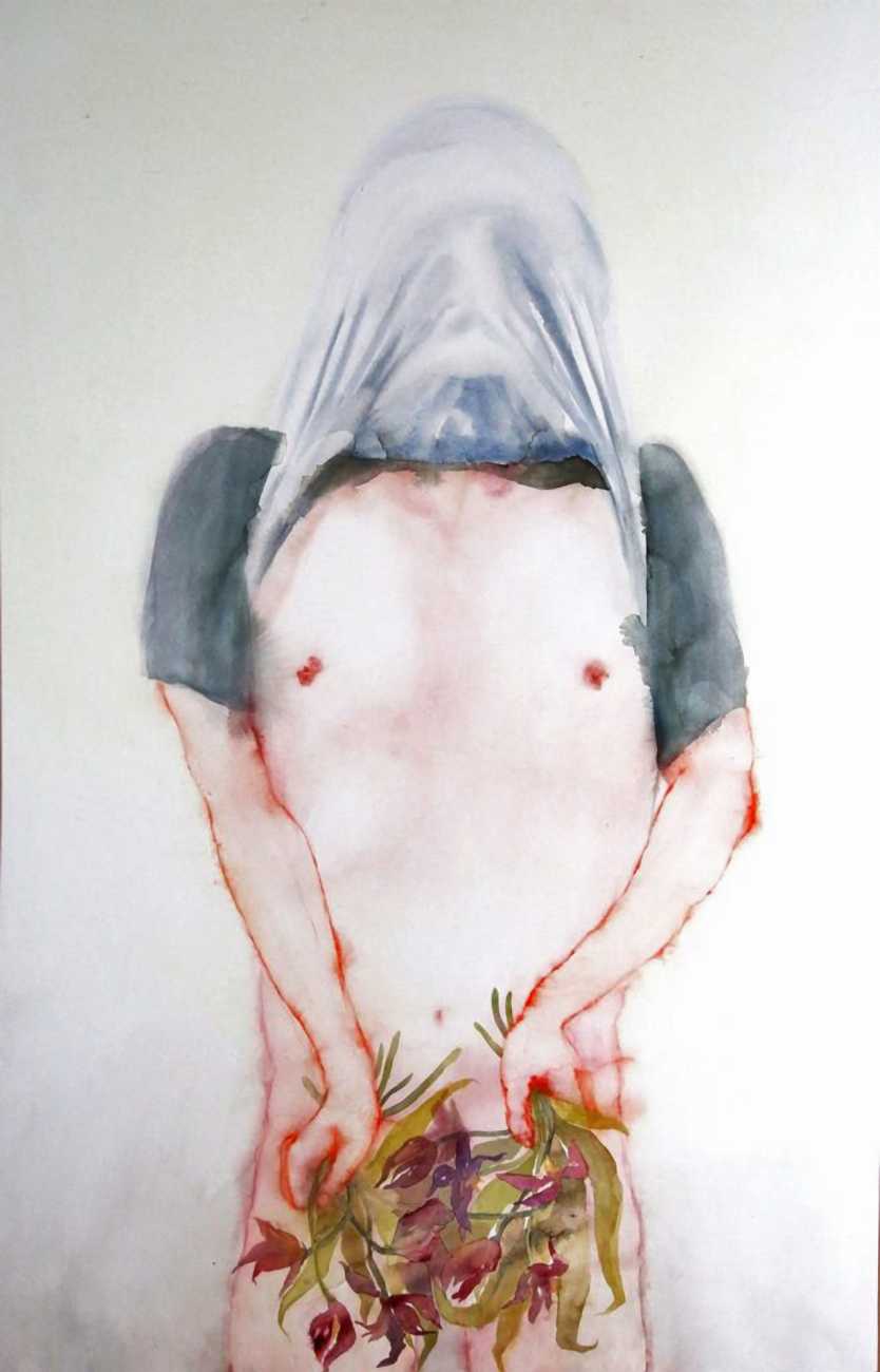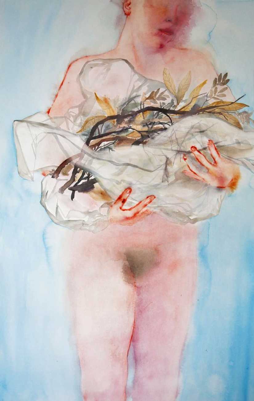 The Finnish artist Sirkku Rosi grew up in Tampere, and graduated as a Master of Arts from Aalto University in 2015. She is best known for her atmospheric and thought-provoking watercolours, though she is also interested and involved in performance art, and teaches art on a regular basis. In her own words, she is fascinated by the connections between bodily experience and creativity, seeing the lived body and art as a shared experience – a carnival of flesh.