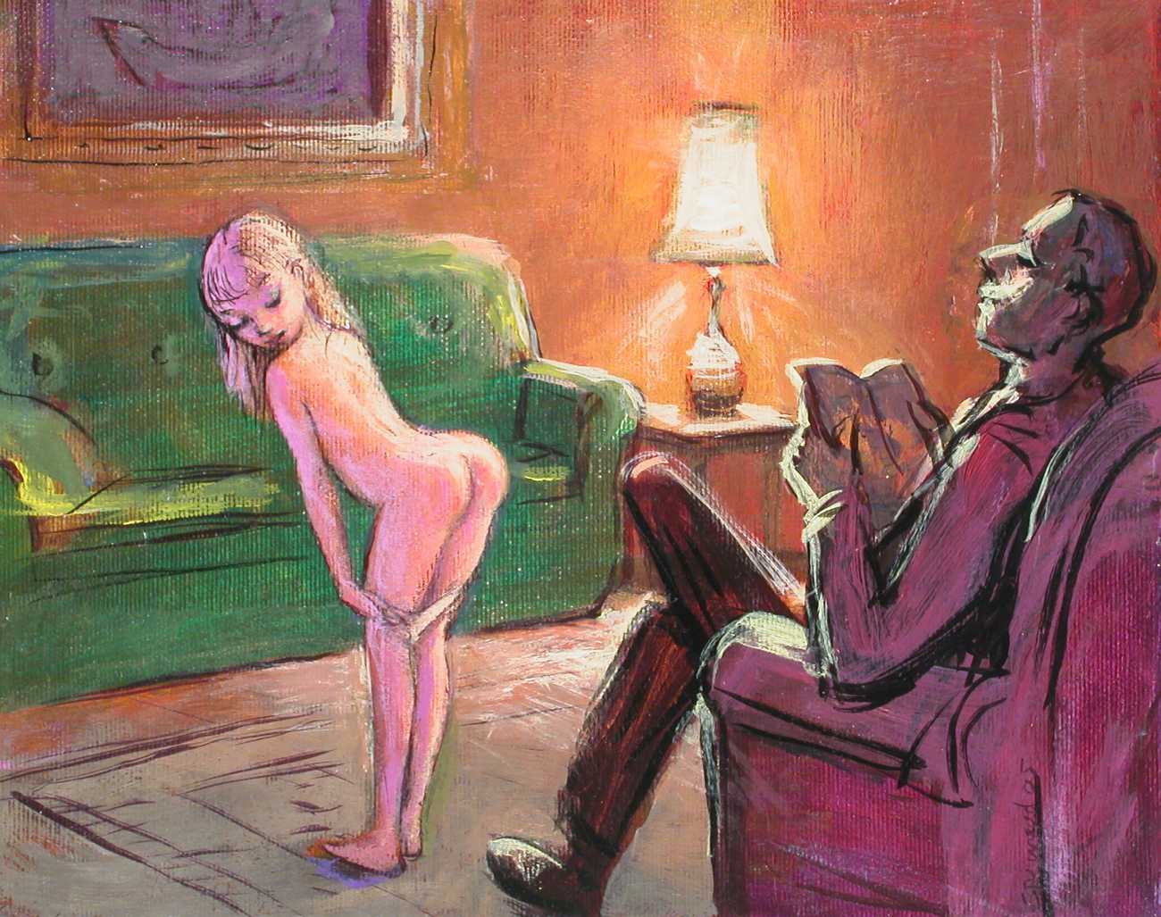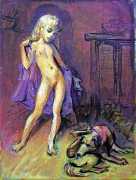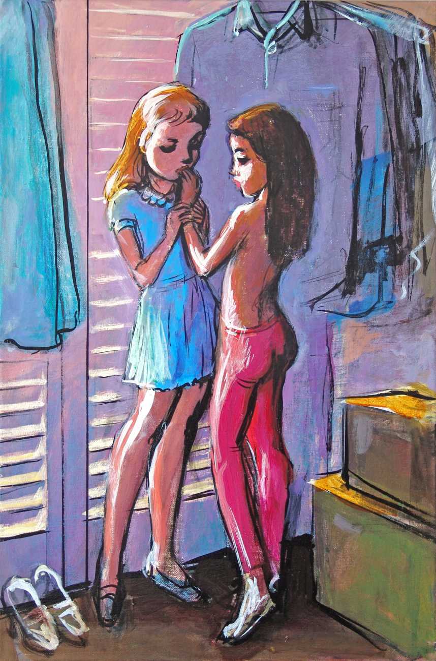 The American artist Stu (Stuart) Mead was born in Waterloo, Iowa, though for the last twenty years he has lived and worked in Berlin. Mead was born with arthrogryposis, a congenital condition affecting the joints and muscles. He is best known for his paintings of young and teenage girls exploring their sexuality. Concerning the subject matter of his work, he explains, ‘I identify with the girls in my paintings, and I identify equally with the boys and men, as well as the horses, cows and dogs. I’m just an artist with a perverted imagination trying to make good paintings.’
