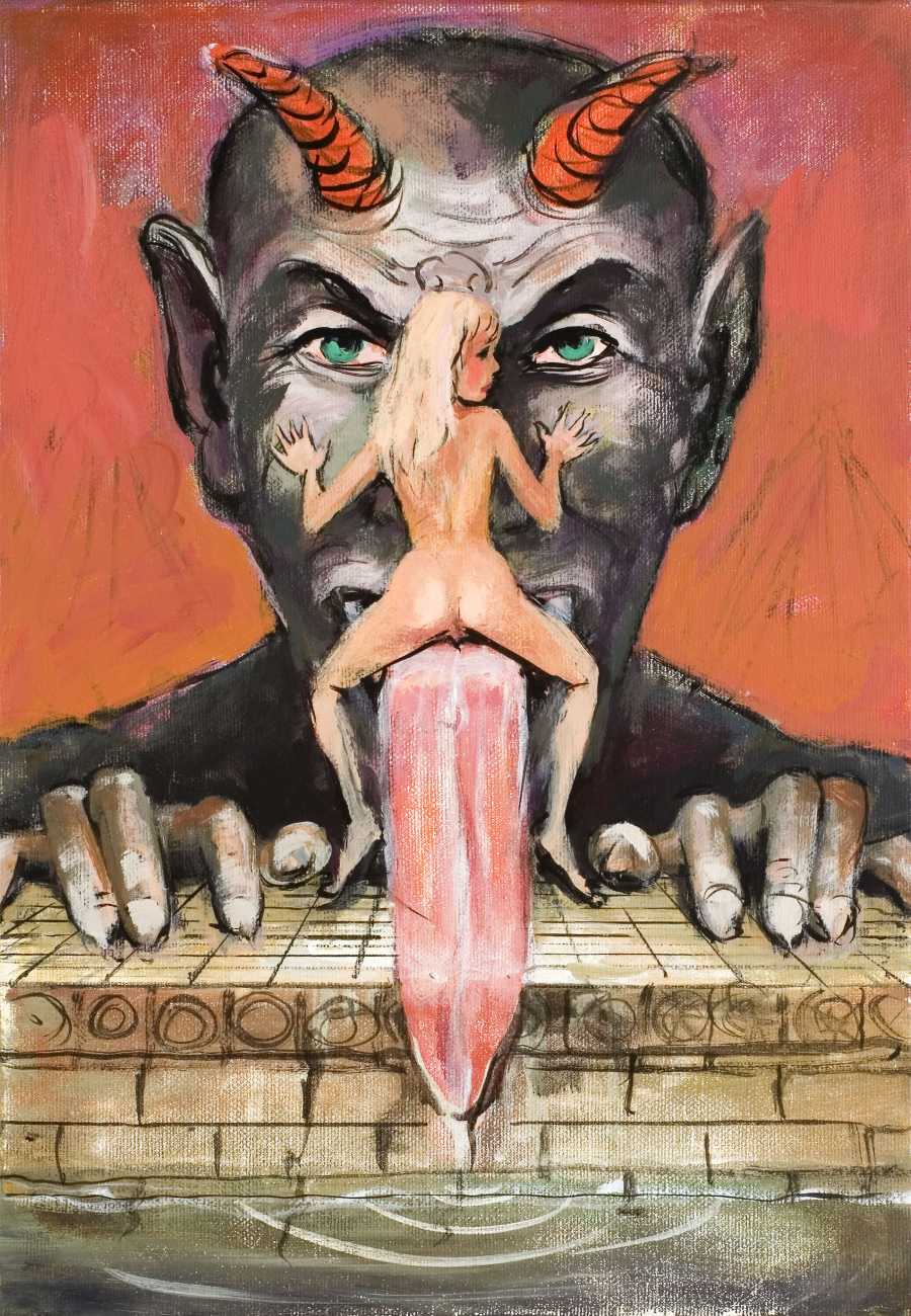 In 1994 Mead started a series of paintings based on his sexually explicit drawings, which were exhibited at Endart in Berlin in 1995. His paintings of this period were the subject of an essay titled ‘The Late Great Aesthetic Taboos’, included as part of the controversial anthology Apocalypse Culture II, edited by Adam Parfrey and published by Feral House in 2000.