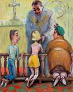 In 2000 Stu Mead moved permanently to Berlin, and in April 2004 a group exhibition, ‘When Love Turns to Poison’, was held at the Kunstraum Bethanien, showing among other Mead works the painting First Communion. During the exhibition the painting was destroyed by a religion-obsessed vandal; the exhibition became a national scandal, with conservative newspapers declaring it pornographic. Controversy also developed around an exhibition of Mead’s work at the Hyaena Gallery in Burbank, California in 2008, when four artists associated with the gallery left it in protest against Mead’s exhibition. In 2015 Mead exhibited with Reinhard Scheibner at Le Dernier Cri’s gallery in Marseilles. The right-wing French National Front protested against it for their own political purposes, which led to Pakito Bolino receiving death threats.