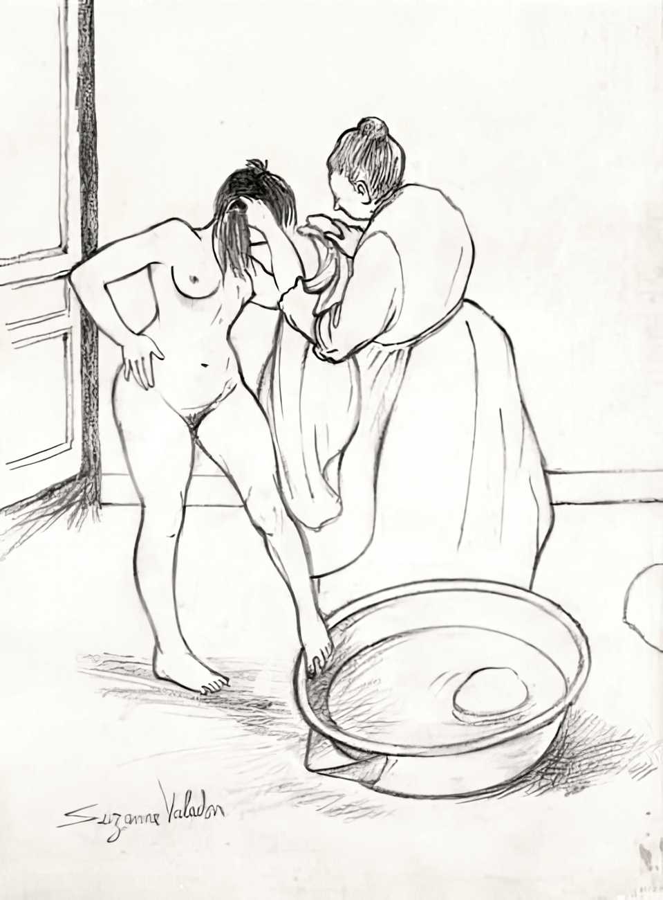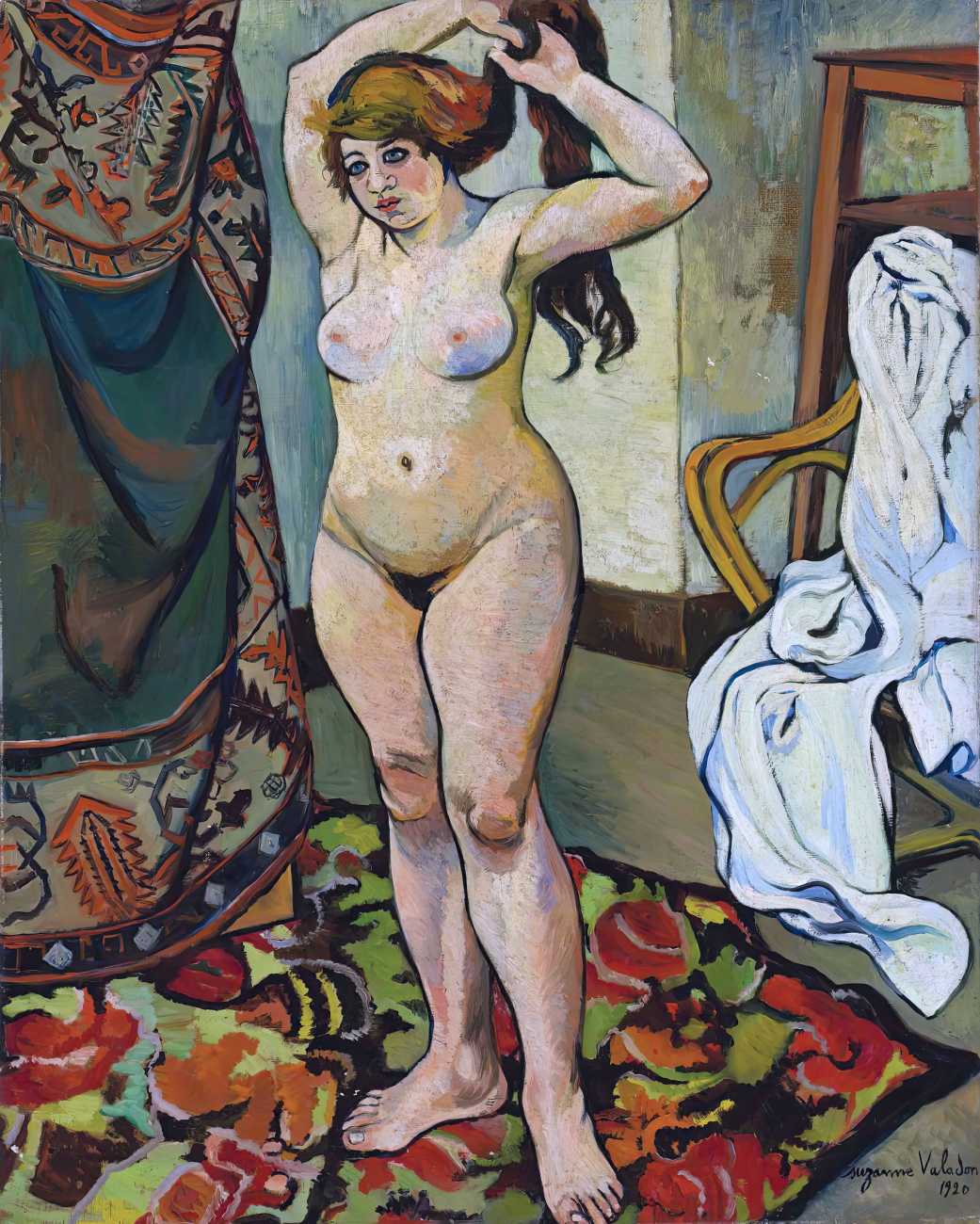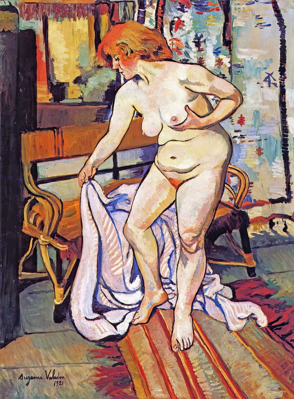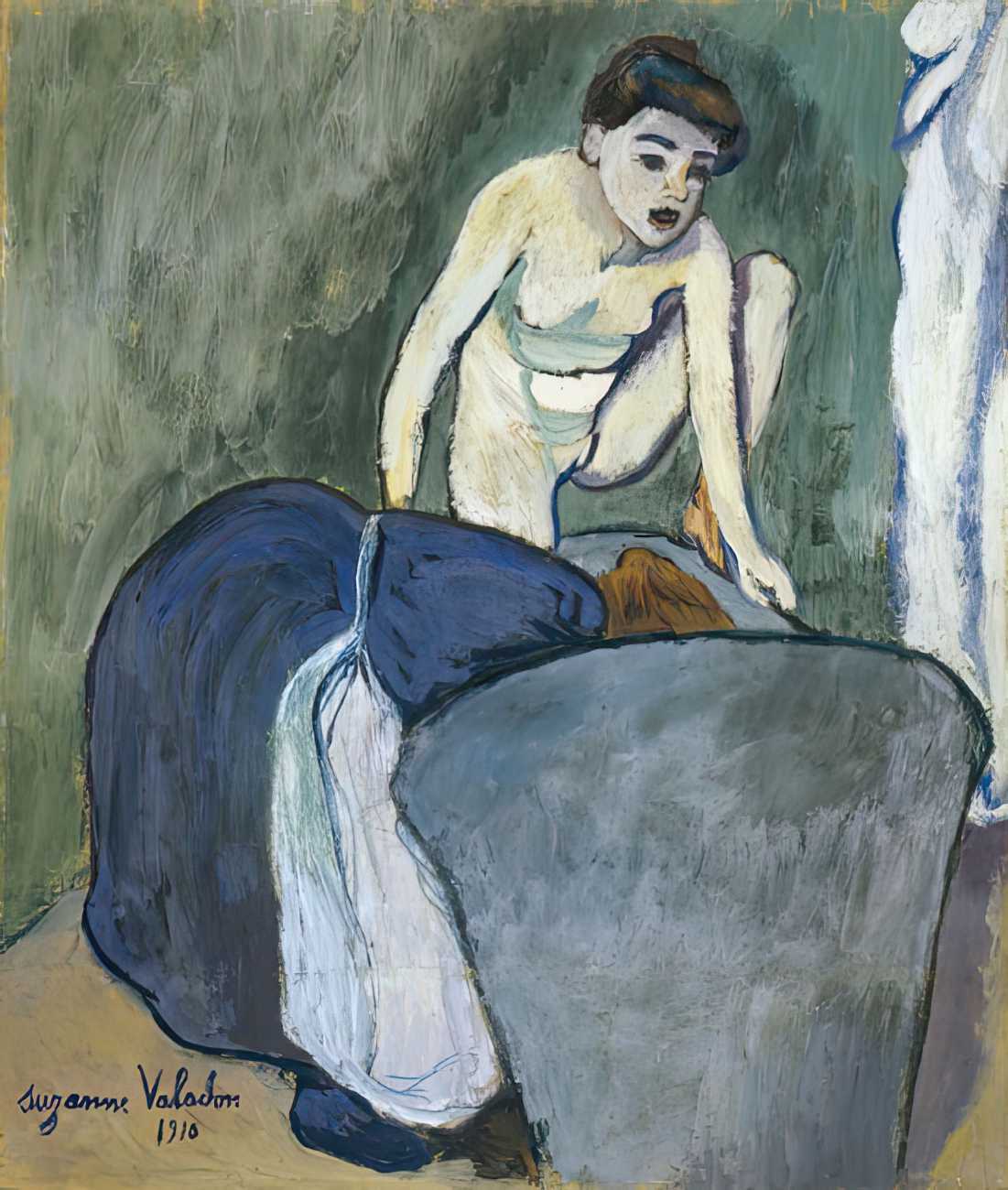 Valadon taught herself how to draw, and growing up in Montmartre she pursued her interest in art, first working as a model and a muse for artists, observing and learning their techniques, as she could not afford art lessons herself. Valadon began working as a model in 1880, and posed for more than ten years for artists including Berthe Morisot, Pierre-Cécile Puvis de Chavannes, Théophile Steinlen, Pierre-Auguste Renoir, Jean-Jacques Henner and Henri de Toulouse-Lautrec. She modelled under the name Maria before being nicknamed Suzanne by Toulouse-Lautrec after the biblical story of Susanna and the Elders. She was Toulouse-Lautrec’s lover for two years. She observed and learned from artists such as de Chavannes, Toulouse-Lautrec and Renoir before becoming a painter in her own right.