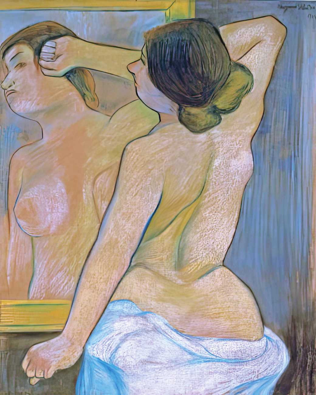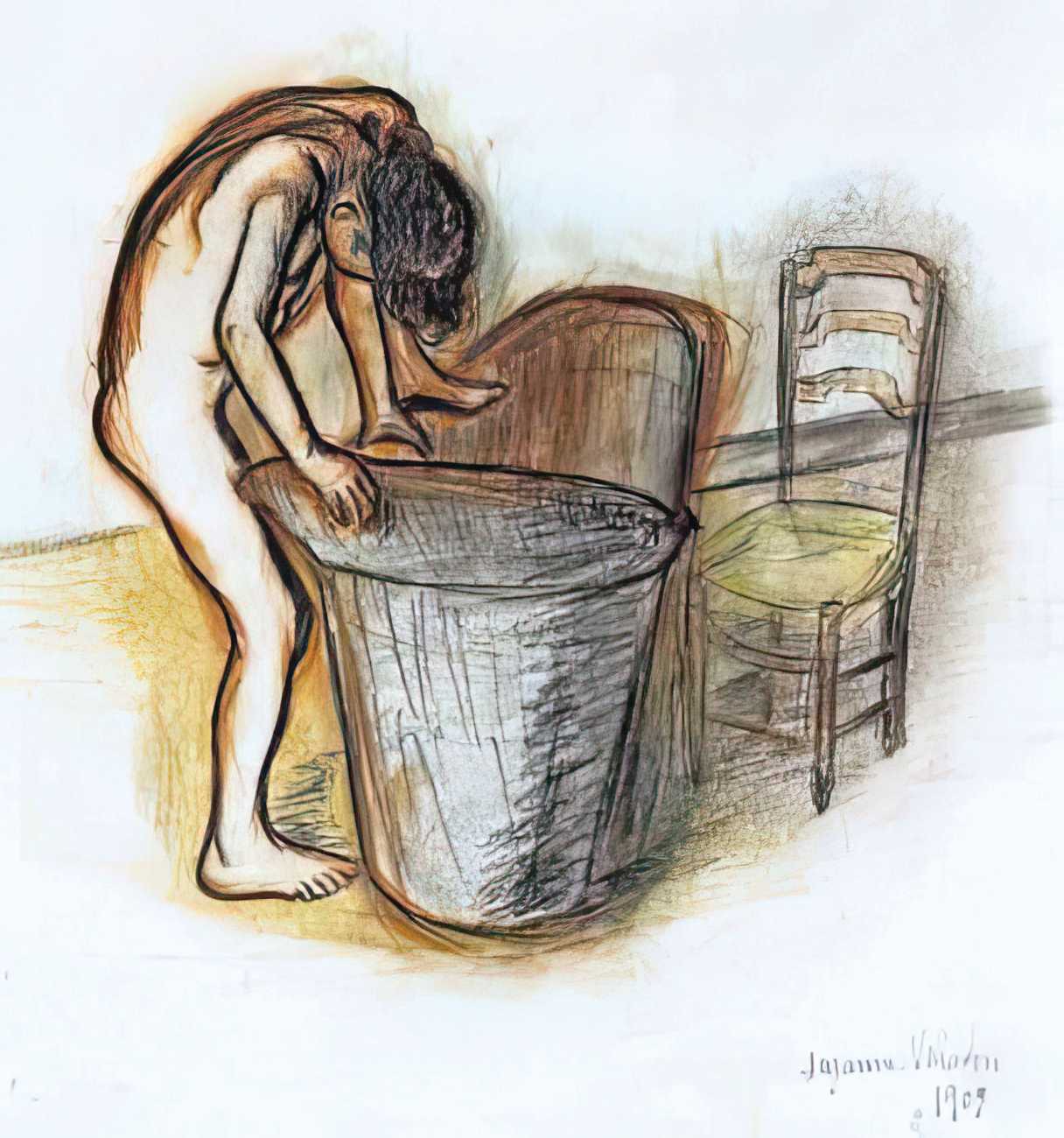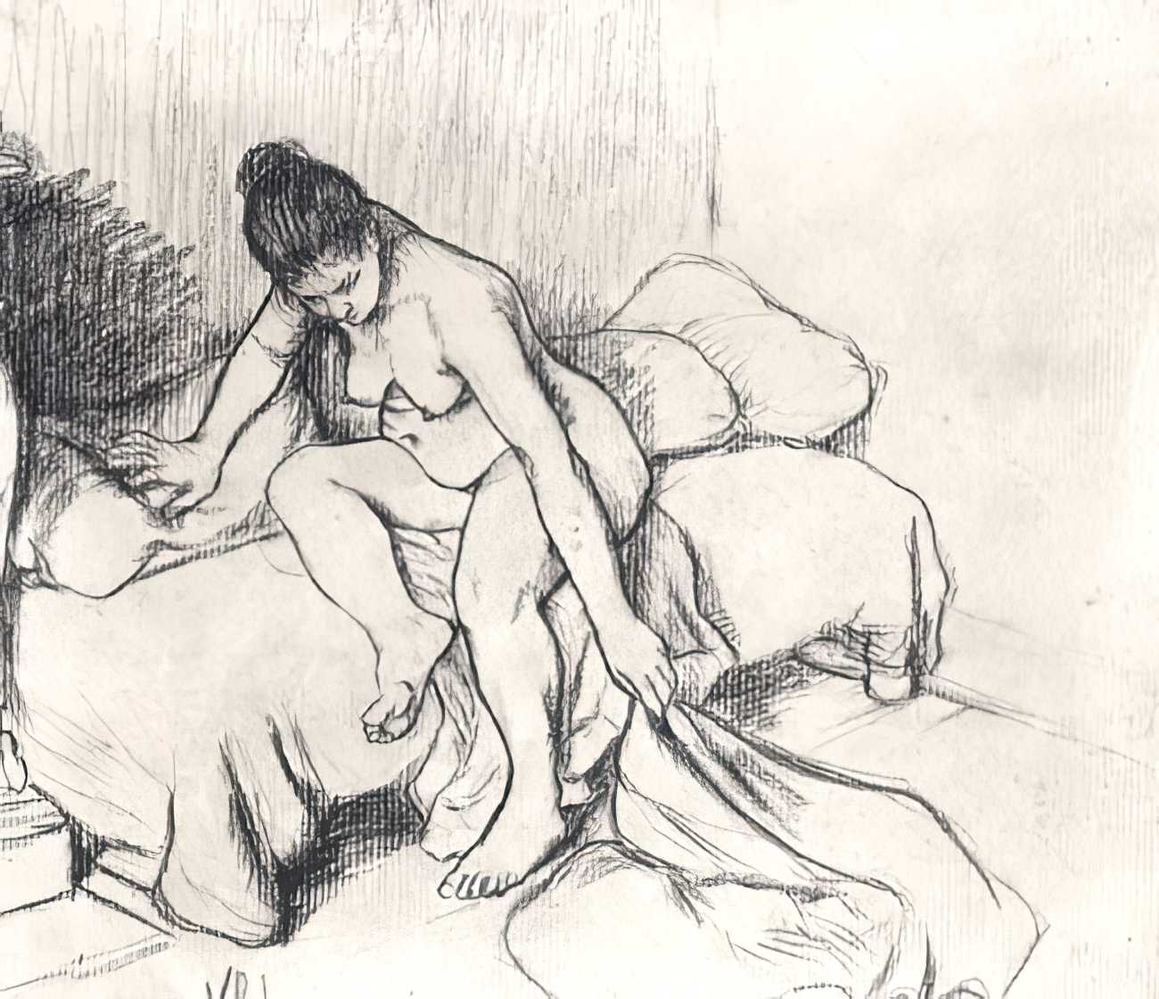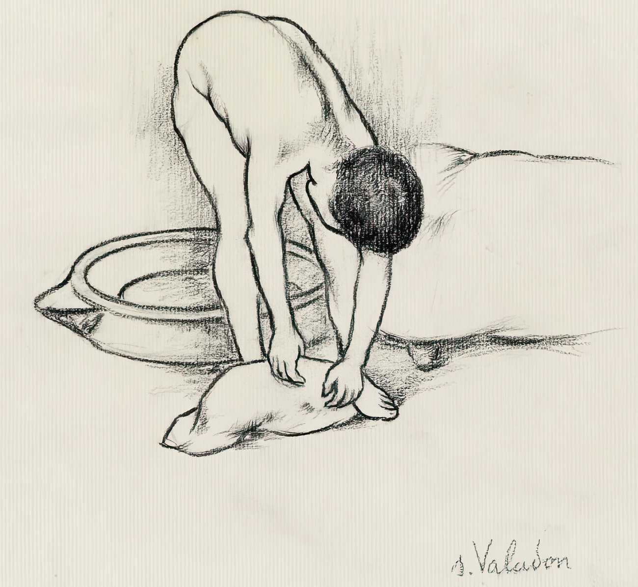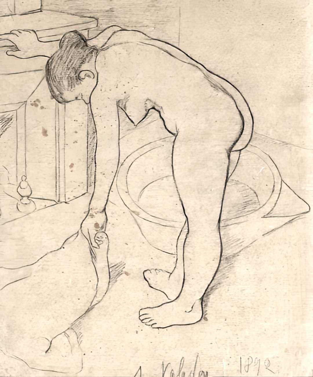 Valadon taught herself how to draw, and growing up in Montmartre she pursued her interest in art, first working as a model and a muse for artists, observing and learning their techniques, as she could not afford art lessons herself. Valadon began working as a model in 1880, and posed for more than ten years for artists including Berthe Morisot, Pierre-Cécile Puvis de Chavannes, Théophile Steinlen, Pierre-Auguste Renoir, Jean-Jacques Henner and Henri de Toulouse-Lautrec. She modelled under the name Maria before being nicknamed Suzanne by Toulouse-Lautrec after the biblical story of Susanna and the Elders. She was Toulouse-Lautrec’s lover for two years. She observed and learned from artists such as de Chavannes, Toulouse-Lautrec and Renoir before becoming a painter in her own right.