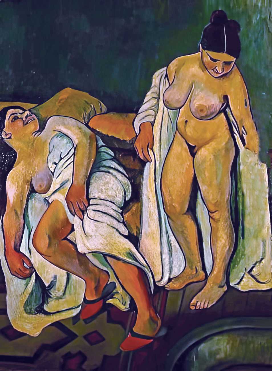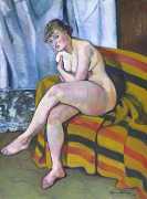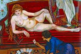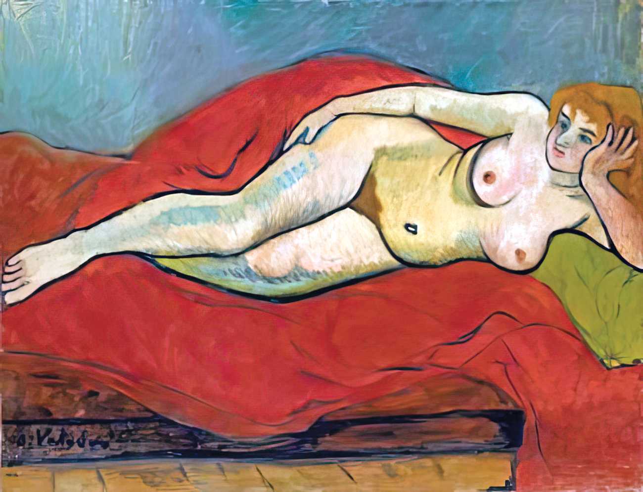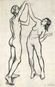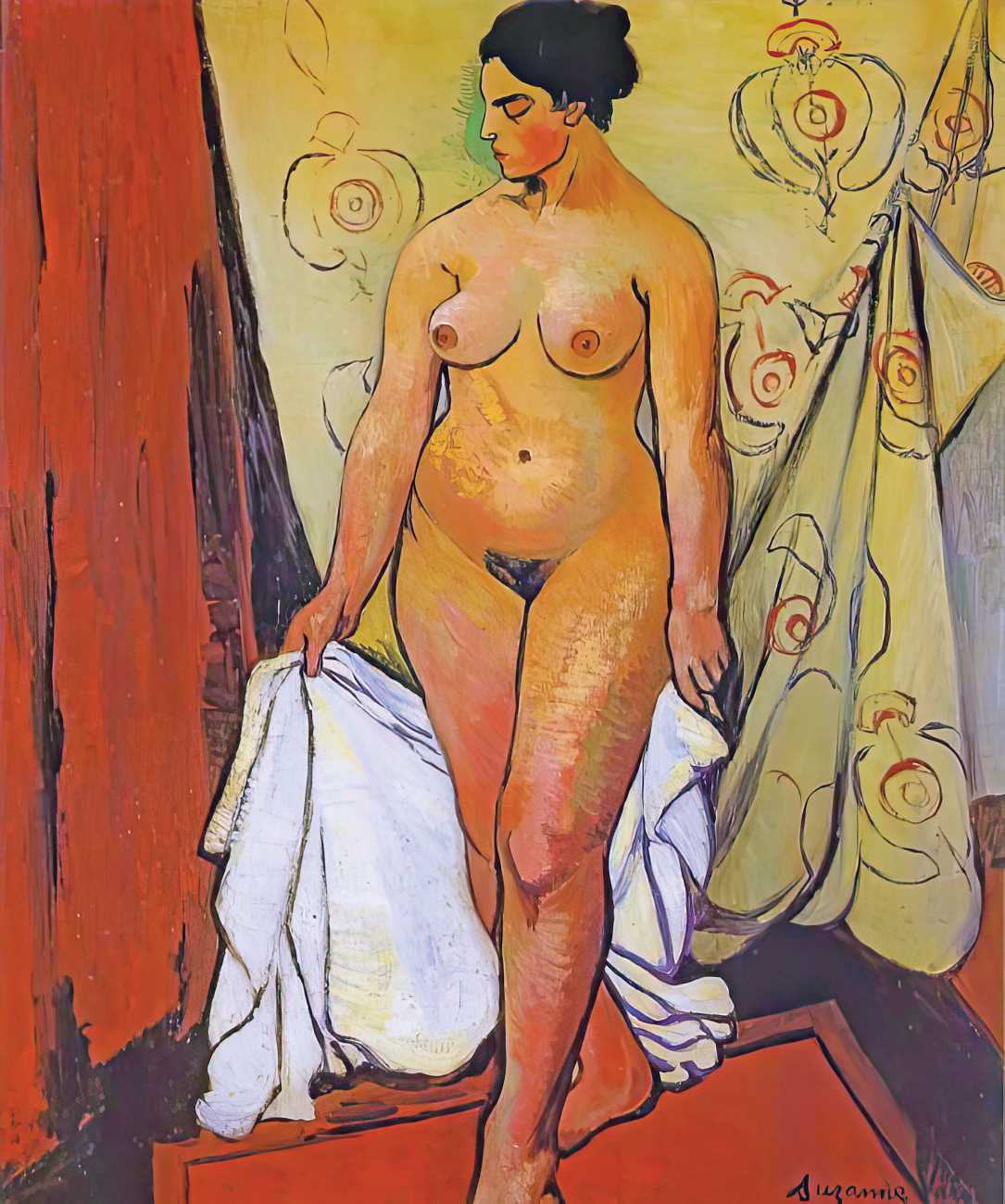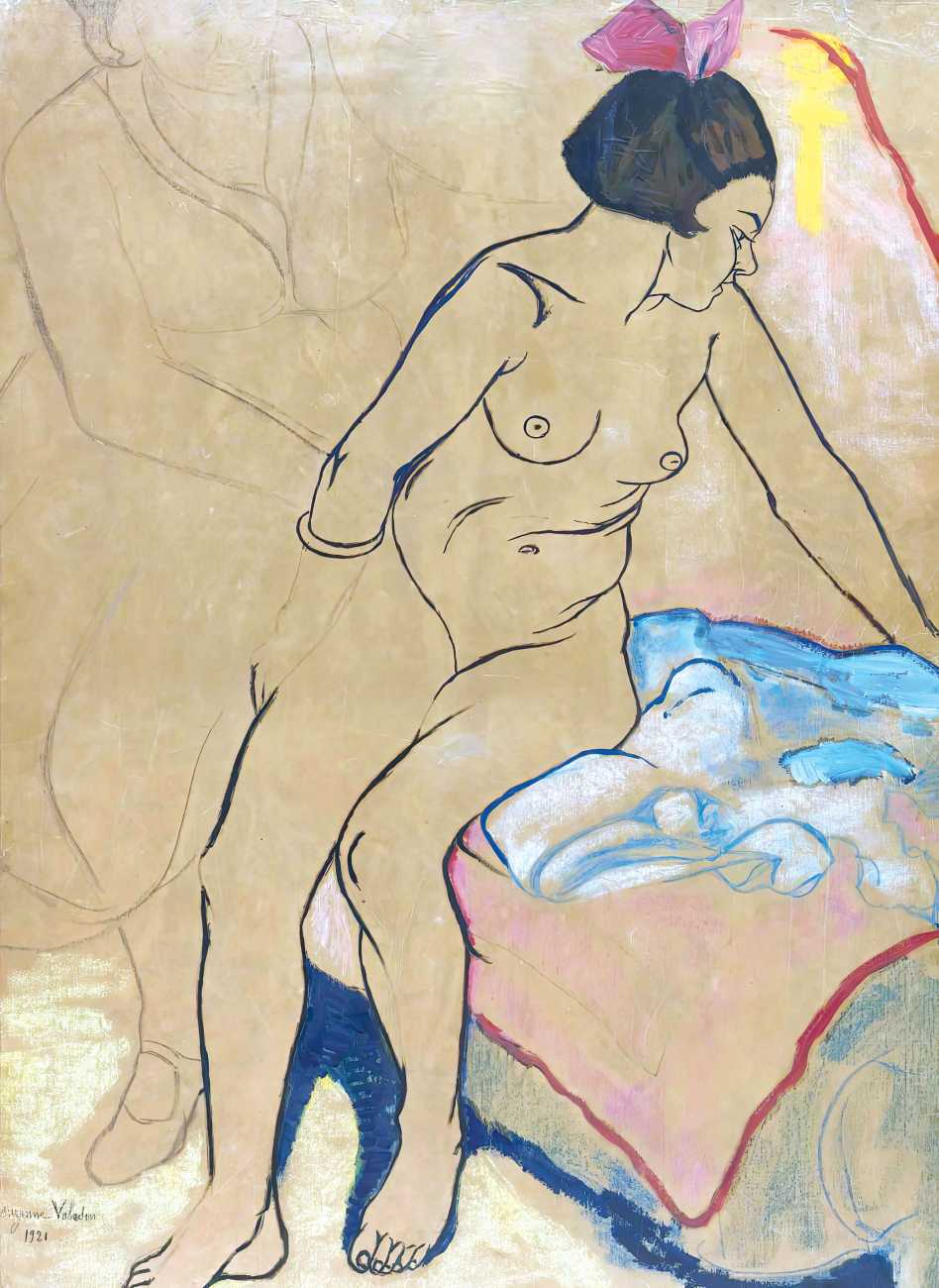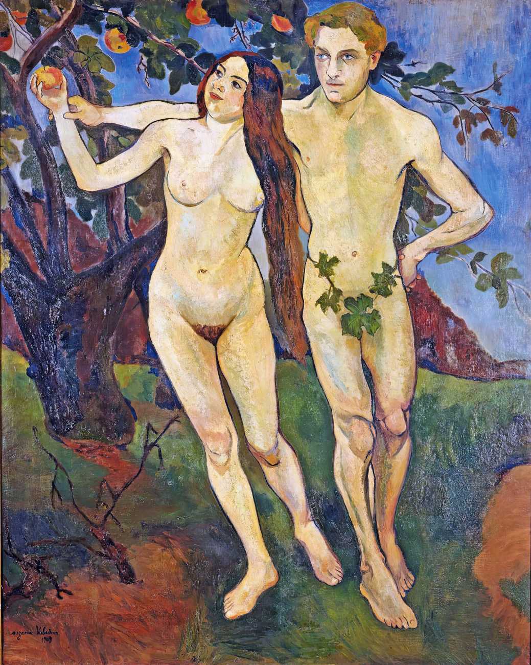 Valadon married the stockbroker Paul Mousis in 1895, and for thirteen years she lived with him in an apartment in Paris and in his house in the countryside. In 1909 Valadon began an affair with the painter André Utter, a 23-year-old friend of her son. He became a model for her and appears as Adam in ‘Adam and Eve’, which was painted that year. She divorced Mousis in 1913 and married Utter the following year.
