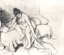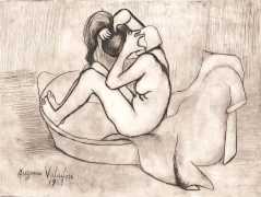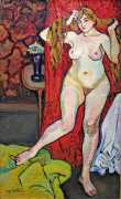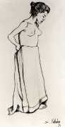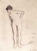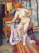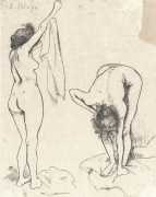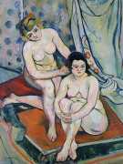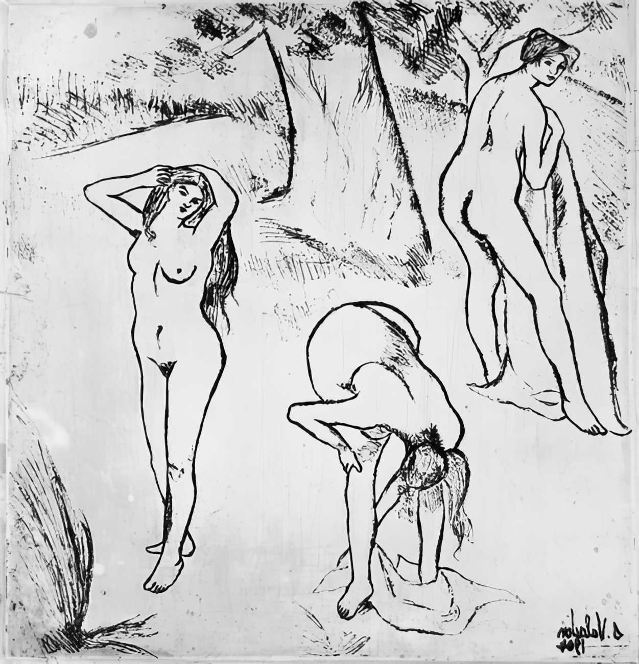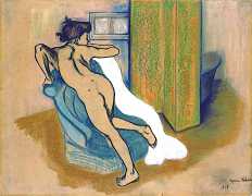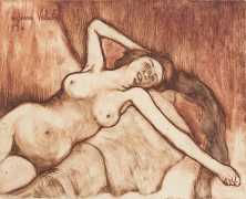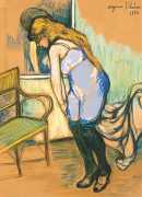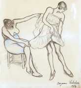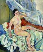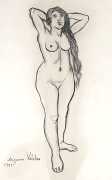 Suzanne Valadon furthered her art by observing the techniques of the artists for whom she posed. In the early 1890s she befriended Edgar Degas, who was impressed by her bold line drawings and fine paintings. He purchased her work, and she remained one of his closest friends until his death in 1917. Her earliest known painting was executed in 1892, and in 1895 the art dealer Paul Durand-Ruel exhibited a group of twelve of her etchings. She regularly showed at Galerie Bernheim-Jeune in Paris, and was the first woman to be accepted as an exhibitor in the Salon de la Nationale in 1894. She exhibited in the Salon d’Automne from 1909, in the Salon des Independants from 1911, and in the Salon des Femmes Artistes Modernes from 1933 to 1938.