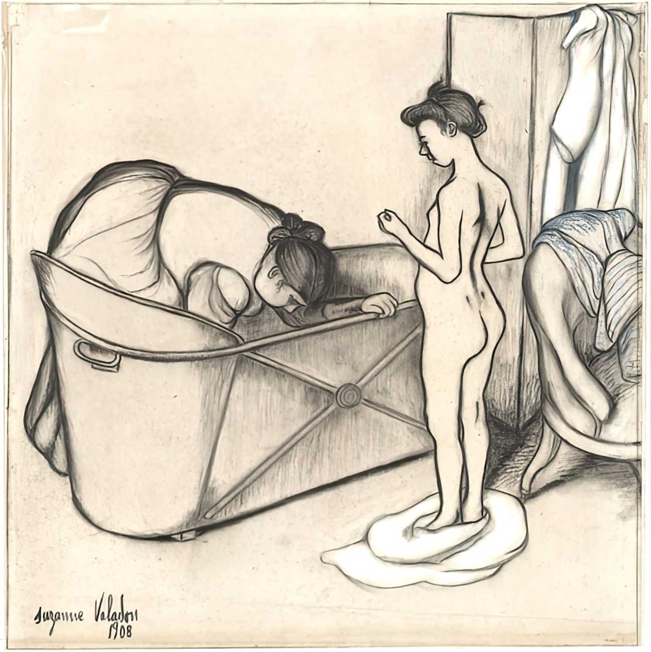 In 1883, when she was eighteen, Valadon gave birth to a son, Maurice Utrillo. Valadon’s mother cared for Maurice while she returned to modelling. Later, Valadon’s friend Miquel Utrillo signed papers recognising Maurice as his son, although the true paternity was never disclosed.
