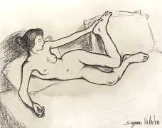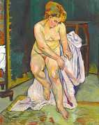 Born as Marie-Clementine Valadon in Bessines-sur-Gartempe near Limoges in central France, Suzanne Valadon was the illegitimate daughter of an unmarried seamstress. She grew up in poverty with her mother in Paris’s Montmartre, and never knew her father. Known to be quite independent and rebellious, when she was nine Suzanne was apprenticed as a dressmaker, but left for a series of jobs including being a waitress, a dishwasher, and a vegetable vendor. At sixteen she joined a circus, but an accident falling from a trapeze abruptly ended her career after only seven months. The circus was visited frequently by artists, and with her blue eyes, blonde hair and a supple body, Suzanne had a charming attraction that caught their attention.