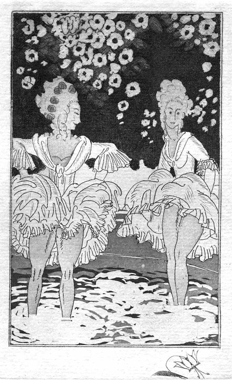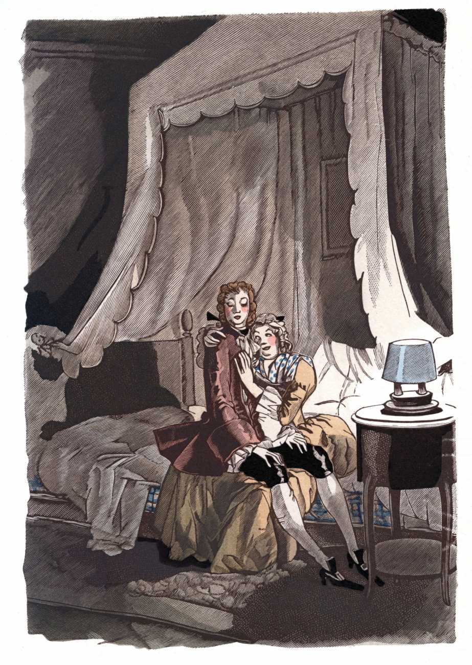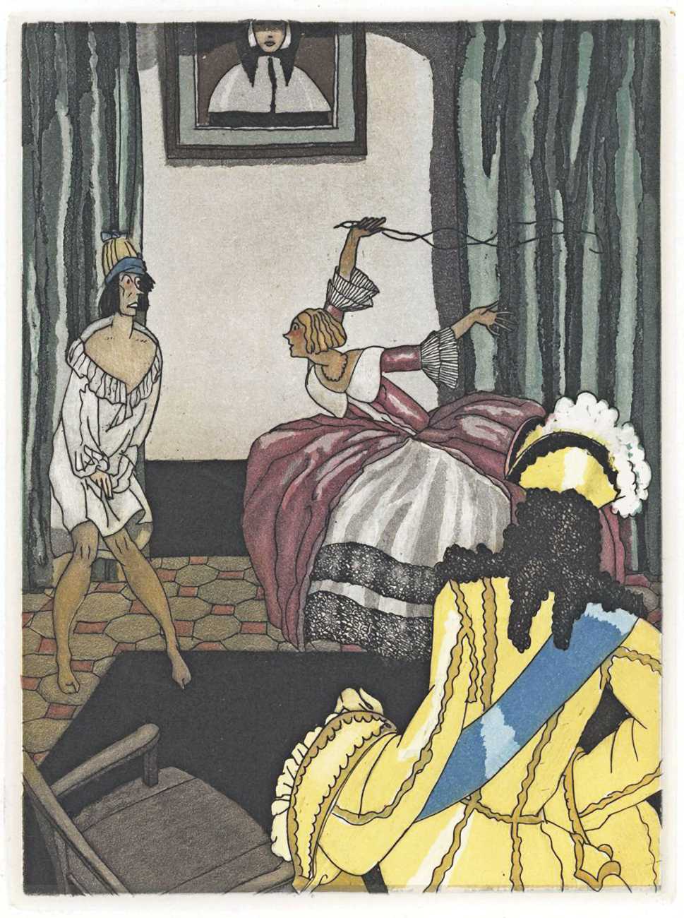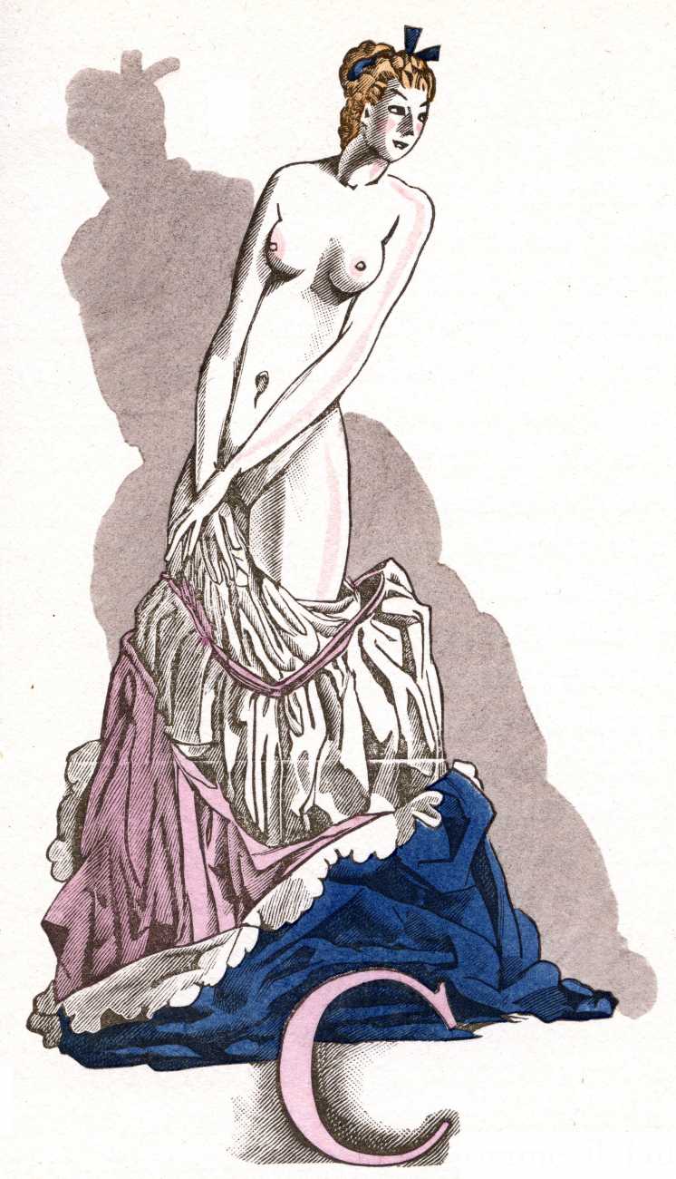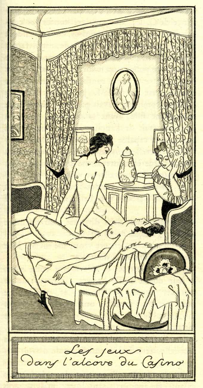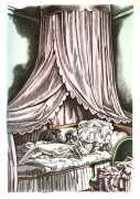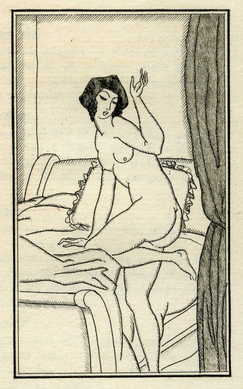 His first major artistic project was to illustrate the amorous adventures of Casanova, which started as a self-published portfolio and later as a book in collaboration with Paris publisher Paul Cotinaud. Une aventure de Casanova, which the demanding artist insisted should be produced to perfection, resulted in a range of different versions including some complex colour work. It is probably no coincidence that Sylvain Sauvage’s main body of erotic illustration coincided with his early years of marriage.