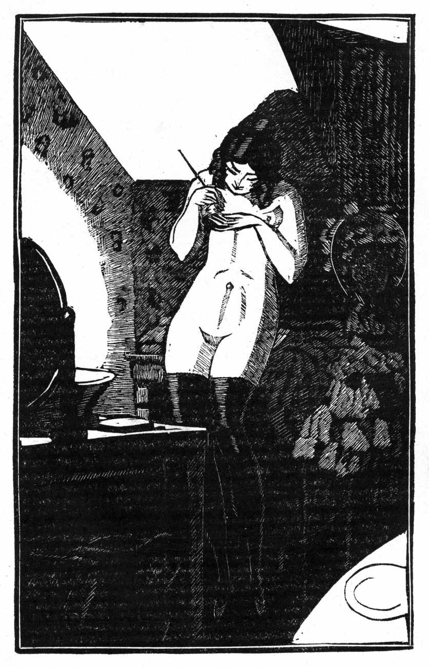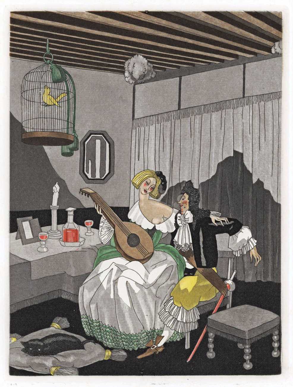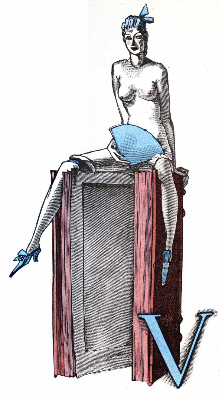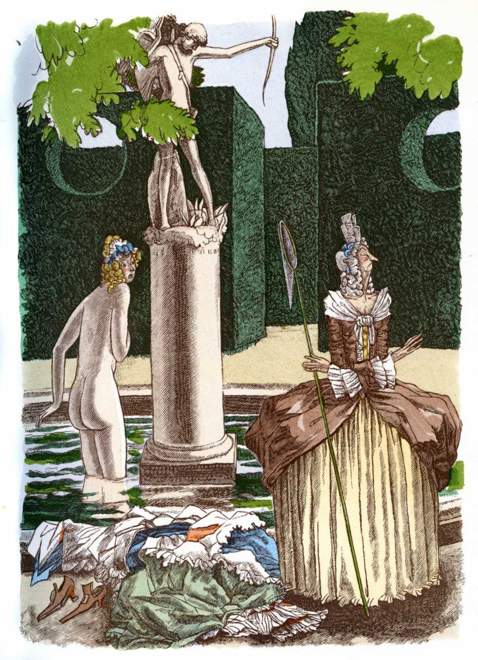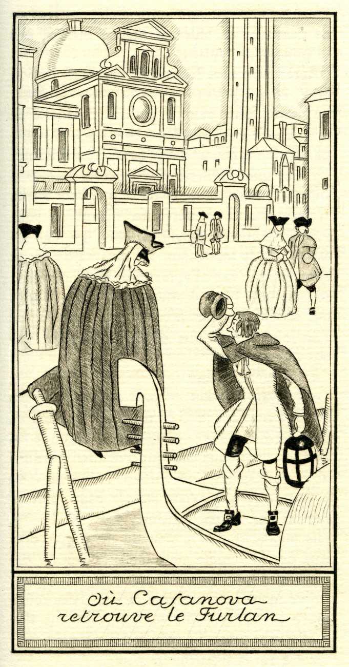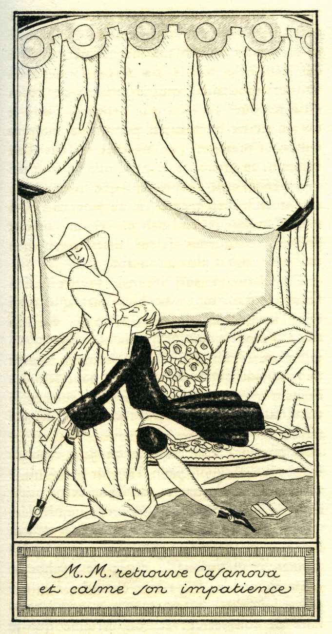 His first major artistic project was to illustrate the amorous adventures of Casanova, which started as a self-published portfolio and later as a book in collaboration with Paris publisher Paul Cotinaud. Une aventure de Casanova, which the demanding artist insisted should be produced to perfection, resulted in a range of different versions including some complex colour work. It is probably no coincidence that Sylvain Sauvage’s main body of erotic illustration coincided with his early years of marriage.