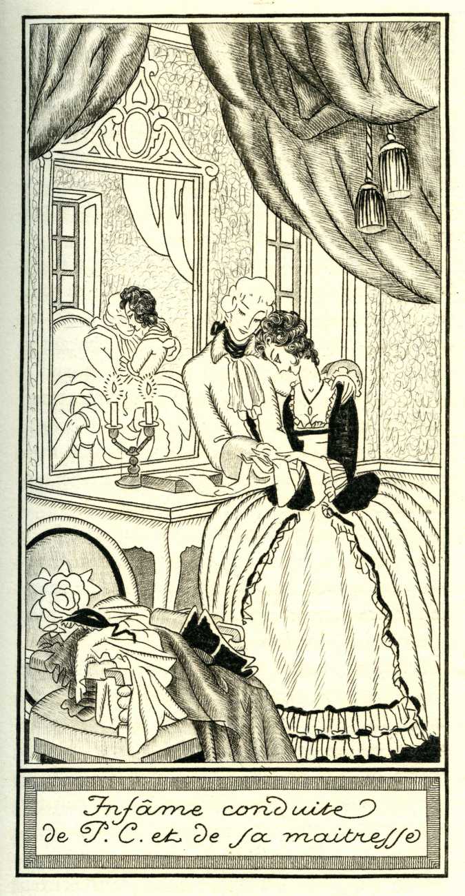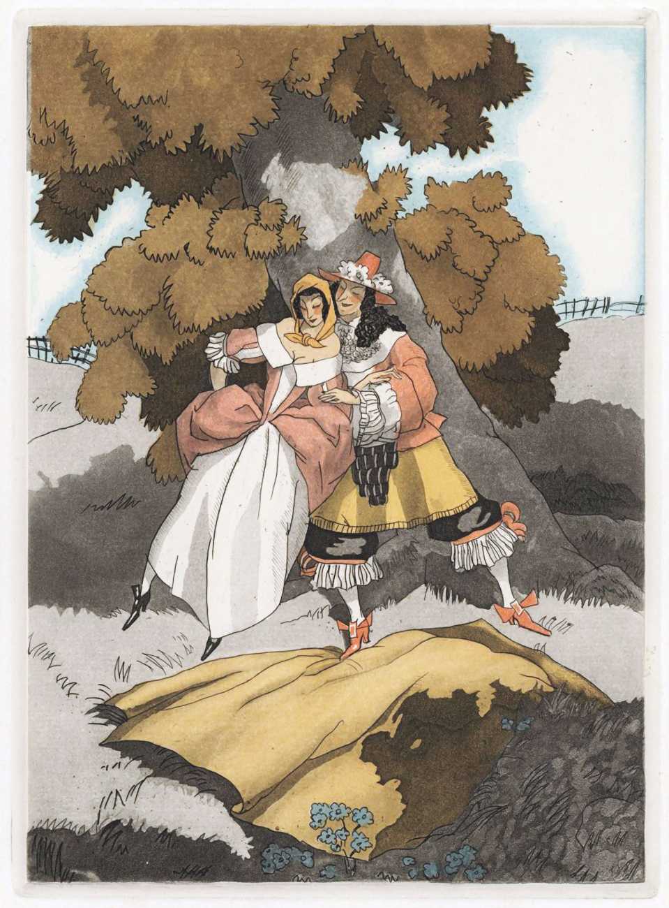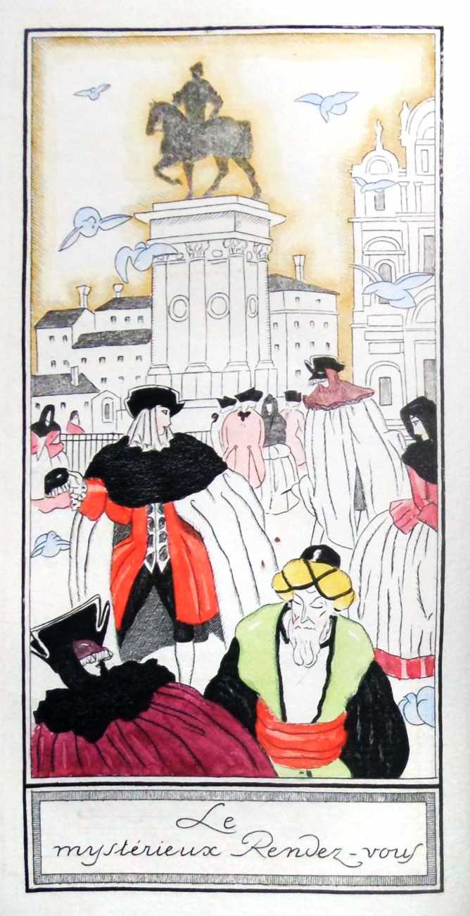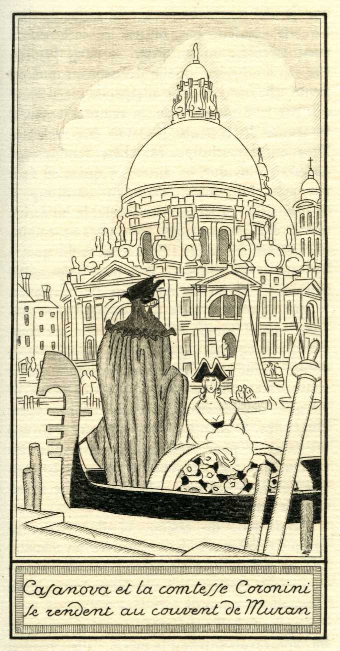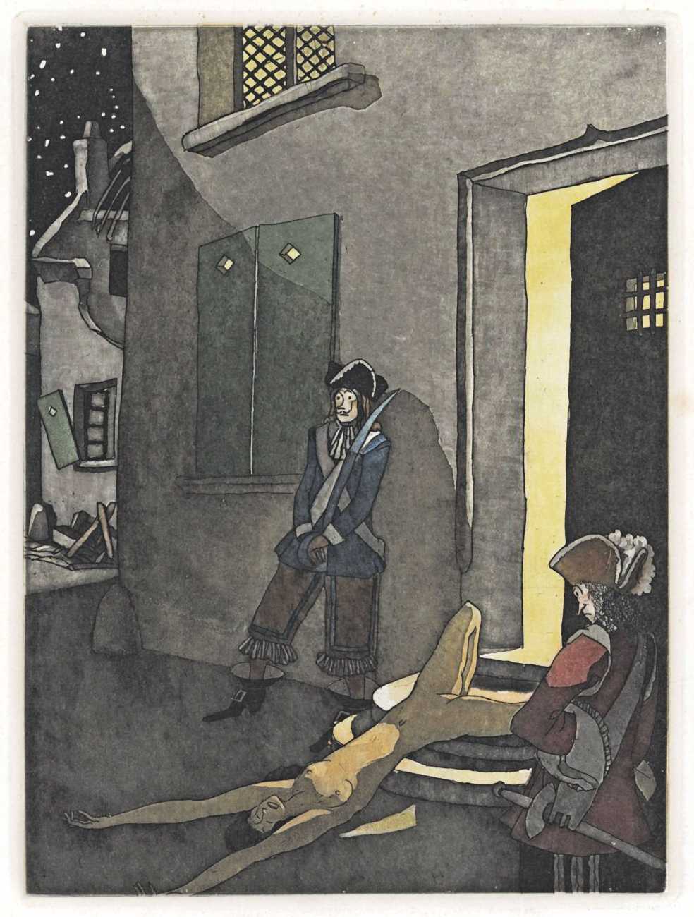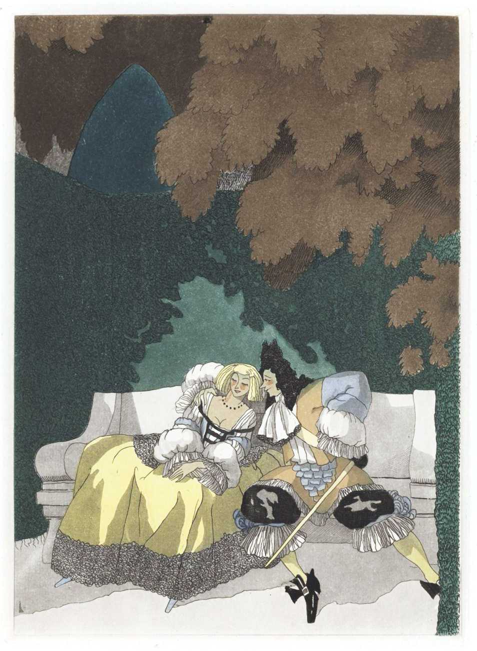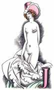 His first major artistic project was to illustrate the amorous adventures of Casanova, which started as a self-published portfolio and later as a book in collaboration with Paris publisher Paul Cotinaud. Une aventure de Casanova, which the demanding artist insisted should be produced to perfection, resulted in a range of different versions including some complex colour work. It is probably no coincidence that Sylvain Sauvage’s main body of erotic illustration coincided with his early years of marriage.