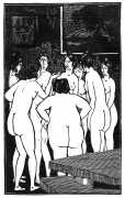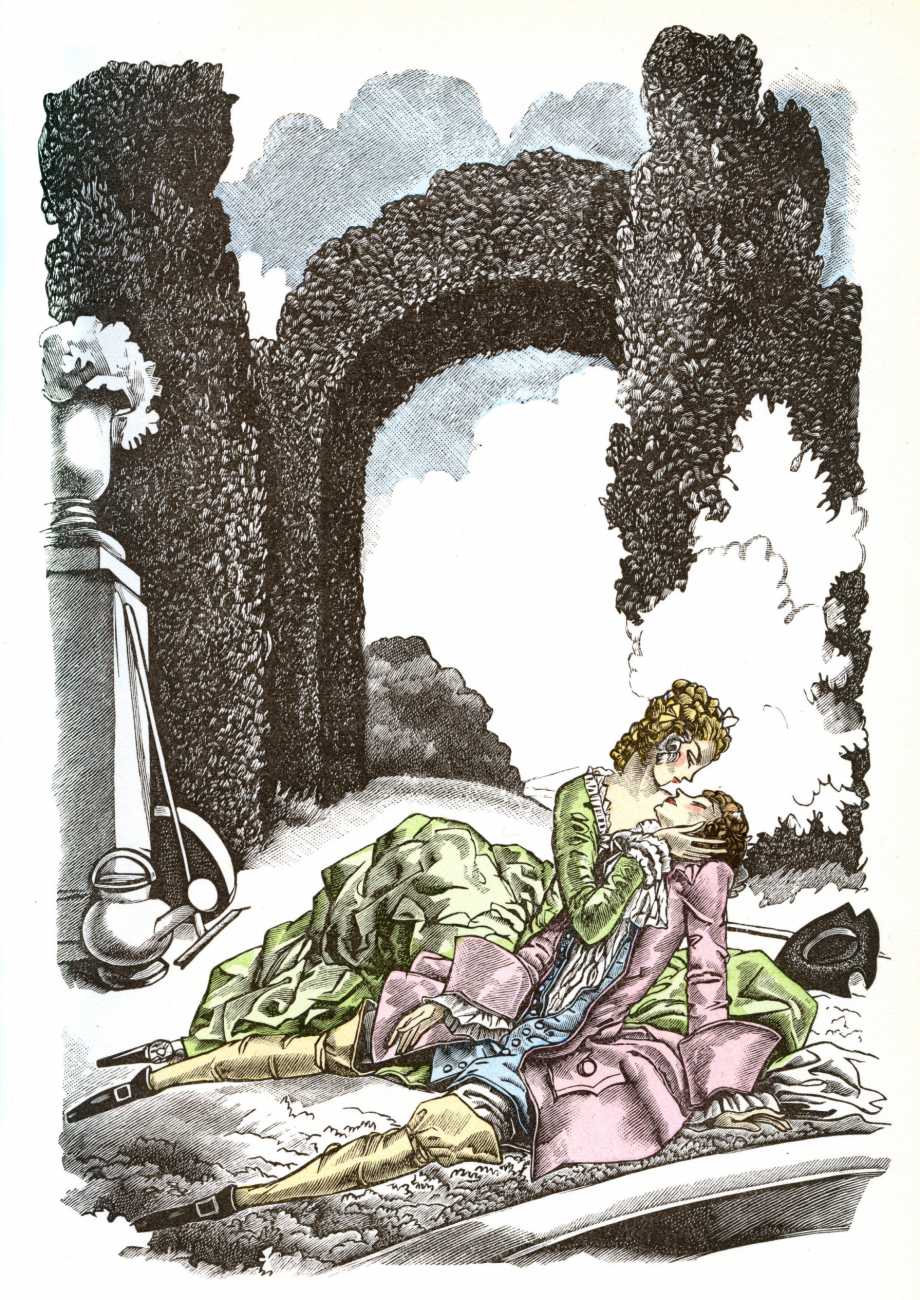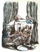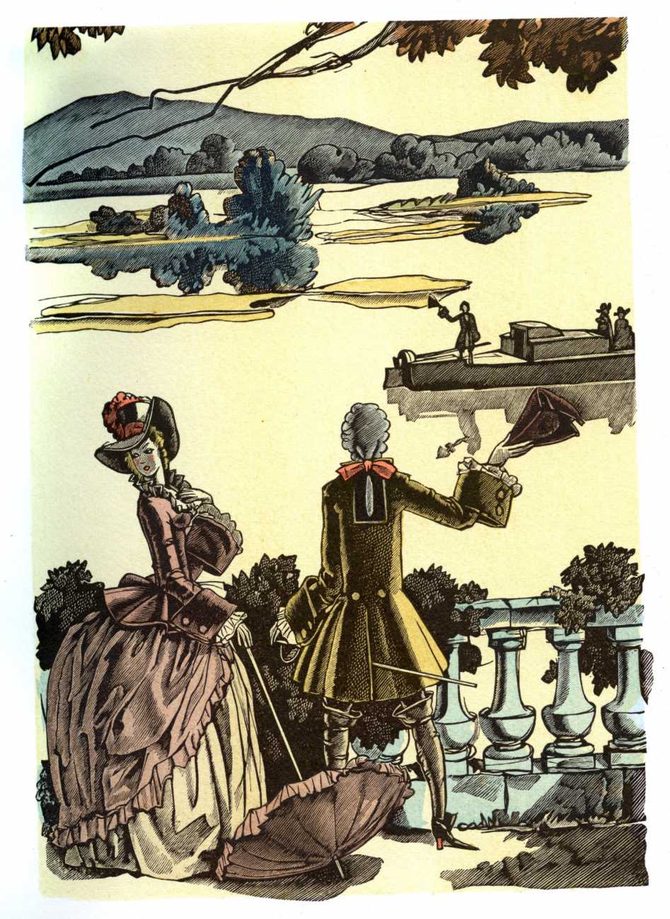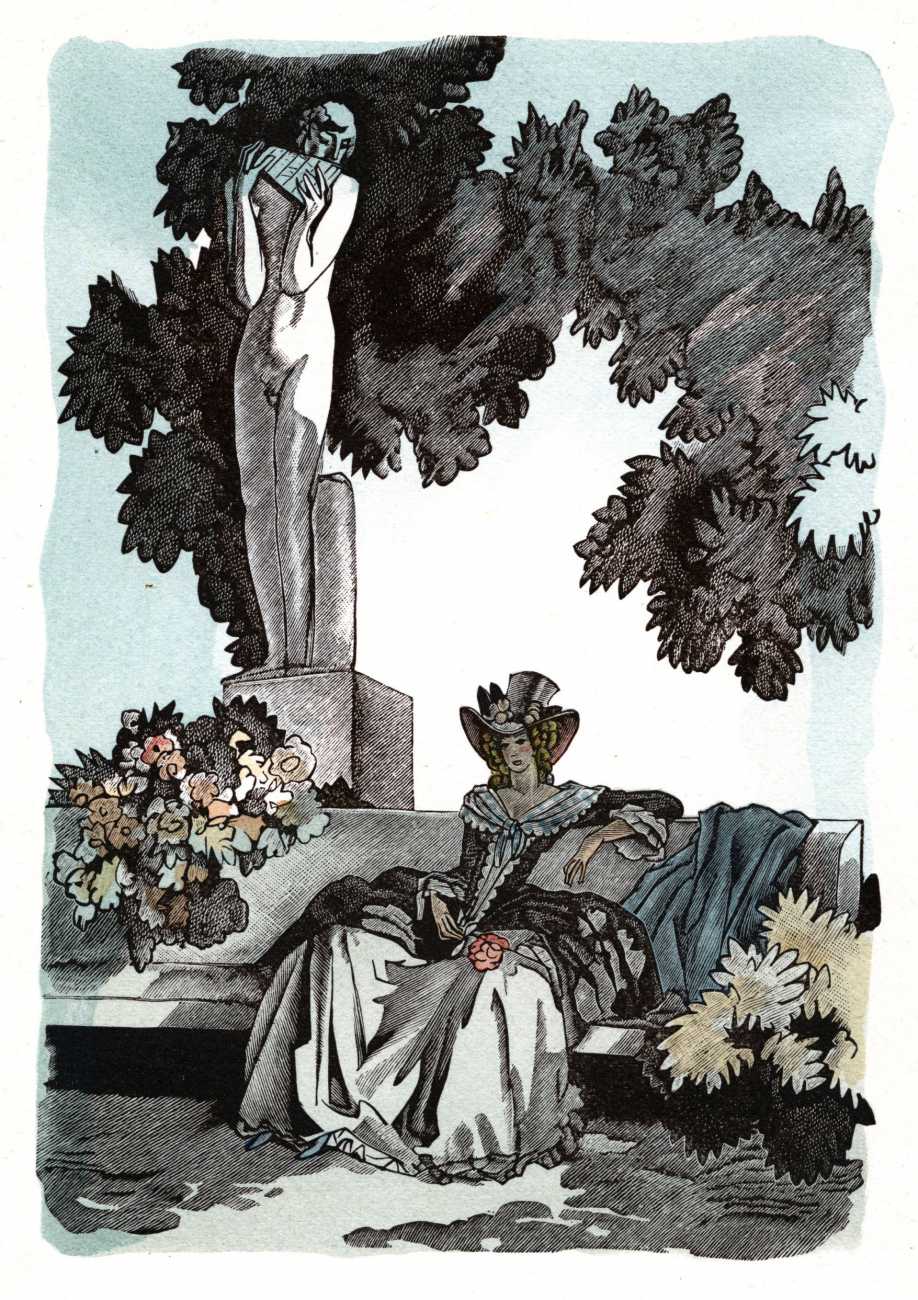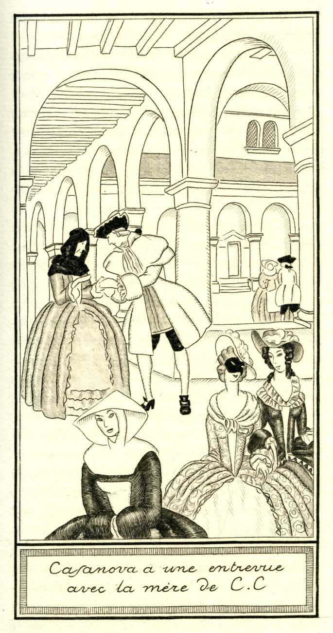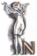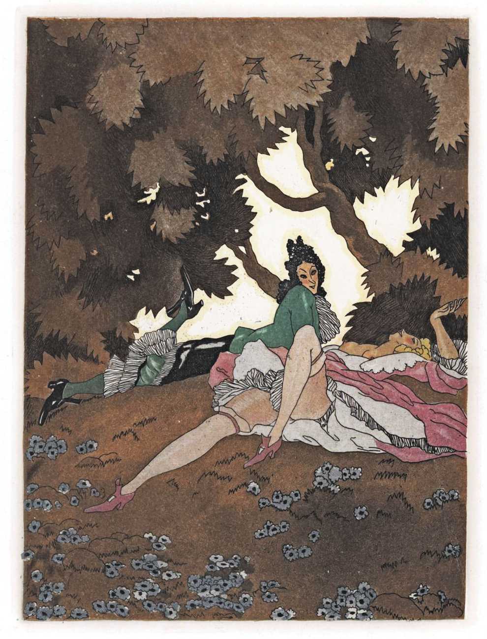 His first major artistic project was to illustrate the amorous adventures of Casanova, which started as a self-published portfolio and later as a book in collaboration with Paris publisher Paul Cotinaud. Une aventure de Casanova, which the demanding artist insisted should be produced to perfection, resulted in a range of different versions including some complex colour work. It is probably no coincidence that Sylvain Sauvage’s main body of erotic illustration coincided with his early years of marriage.