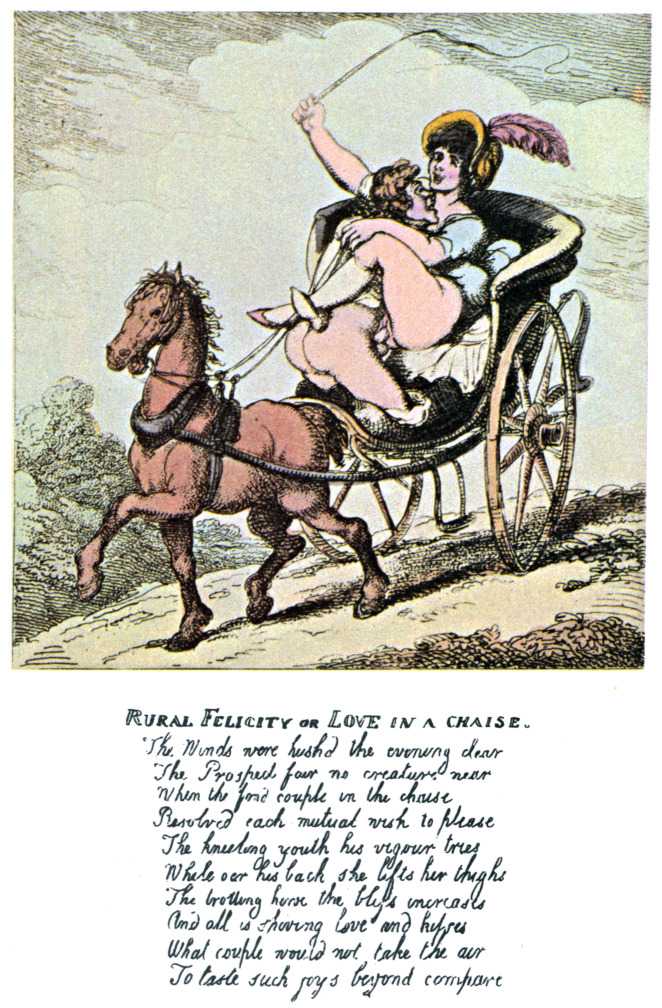 Rowlandson lived in London’s Soho with his aunt until her death in 1789; when she died he inherited £7,000 with which he plunged into the dissipations of the town, and was known to sit at the gaming-table for 36 hours at a stretch. After that he lived in modest, even shabby, addresses in and around the Strand, finally settling in 1800 in attic rooms in James Street, Adelphi, where he lived for the rest of his life with Betsy Winter, his longstanding companion.