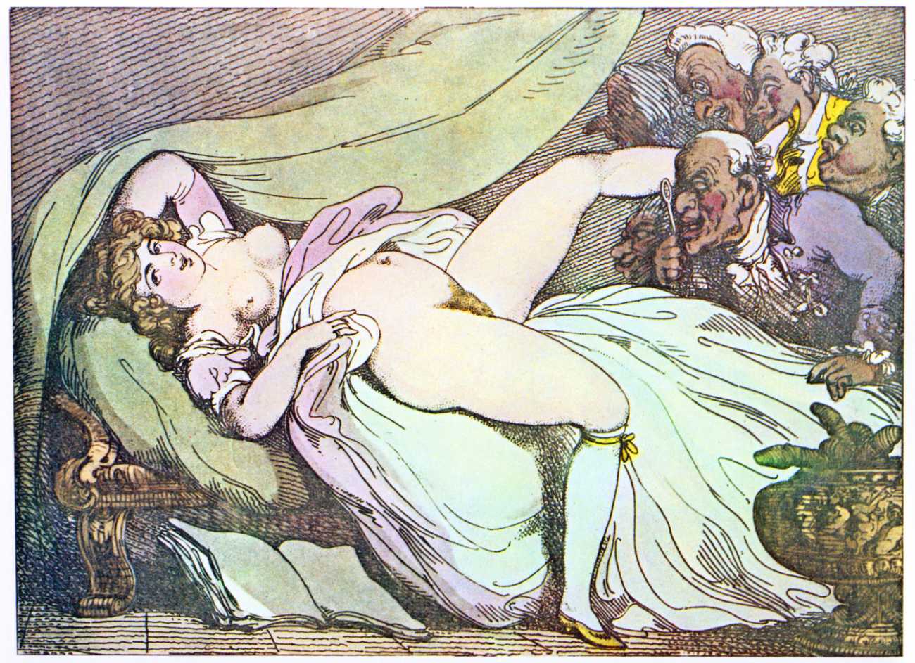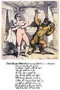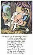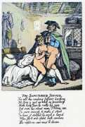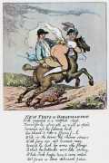 Throughout the 1780s Rowlandson had been engaged in political and social caricature, but his versatility enabled him to work extensively as a book illustrator, initially on the novels of Tobias Smollett and Henry Fielding. Employed by the publisher Rudolph Ackermann from 1798, he depicted The Miseries of Human Life (1808) and added figures to Augustus Charles Pugin’s architectural settings in The Microcosm of London (1808–11). A seasoned traveller, Rowlandson was well qualified to parody the vagaries of the picturesque landscape artist. During the 1820s the work of the Italian Renaissance artist, Giovanni della Porta, inspired him to return to caricature, the artform that had made his name, and produced a number of comparative anatomy studies.
