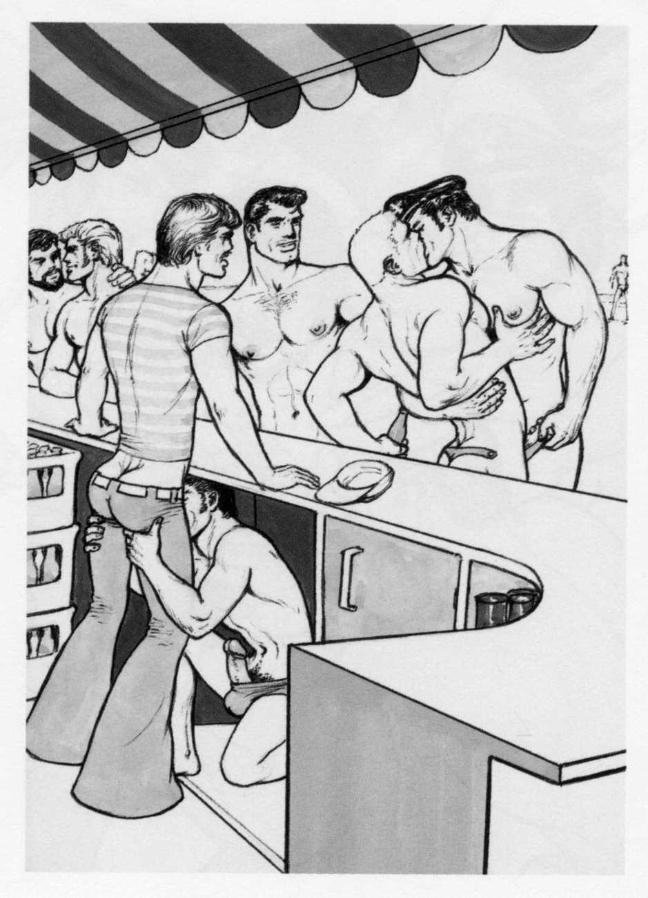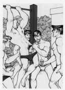 With the decriminalization of male nudity, gay pornography became more mainstream in gay cultures, and Laaksonen’s work along with it. By 1970 he was publishing erotic comic books and exhibiting regularly. In 1973 he gave up his full-time job at the Helsinki office of the international advertising firm McCann-Erickson. ‘Since then I’ve lived in jeans and lived on my drawings,’ is how he described the lifestyle transition which occurred during this period.