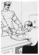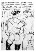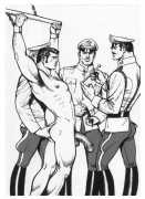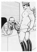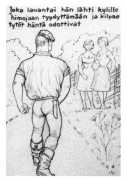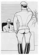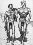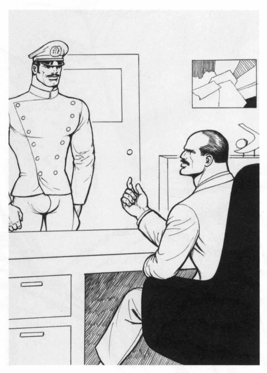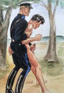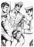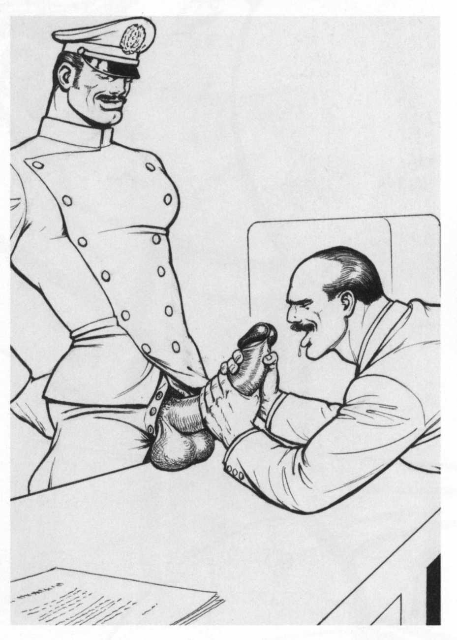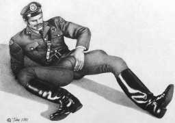 Laaksonen grew up in Turku, and in 1939 moved to Helsinki to study advertising. In his spare time he also started drawing erotic images for his own pleasure. In February 1940 he was conscripted into the Finnish Army; he later attributed his fetishistic interest in uniformed men to encounters with men in army uniform, especially soldiers of the German Wehrmacht serving in Finland at that time. Laaksonen’s artwork of this period compared with his later work is more romantic and softer, often featuring middle class men, rather than the sailors, bikers, lumberjacks and construction workers of his later work.